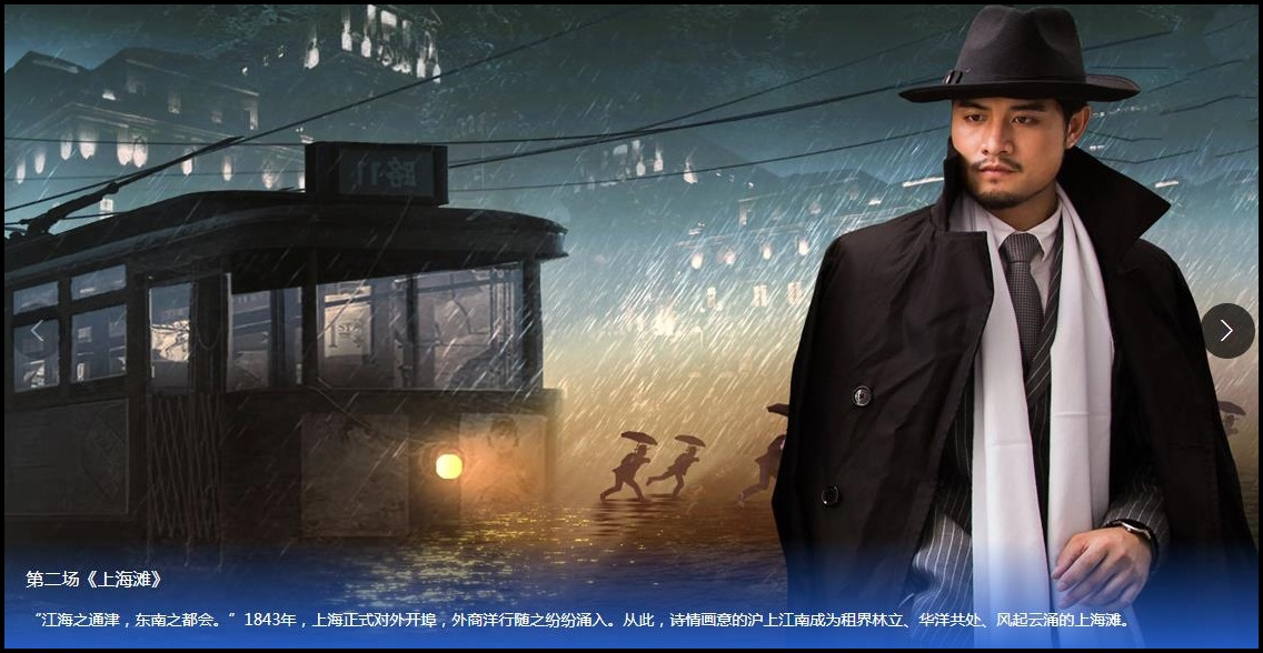 第二场《上海滩》“江海之通津,东南之都会。”1843年,上海正式对外开埠,外商洋行随之纷纷涌入。从此,诗情画意的沪上江南成为租界林立、华洋共处、风起云涌的上海滩。