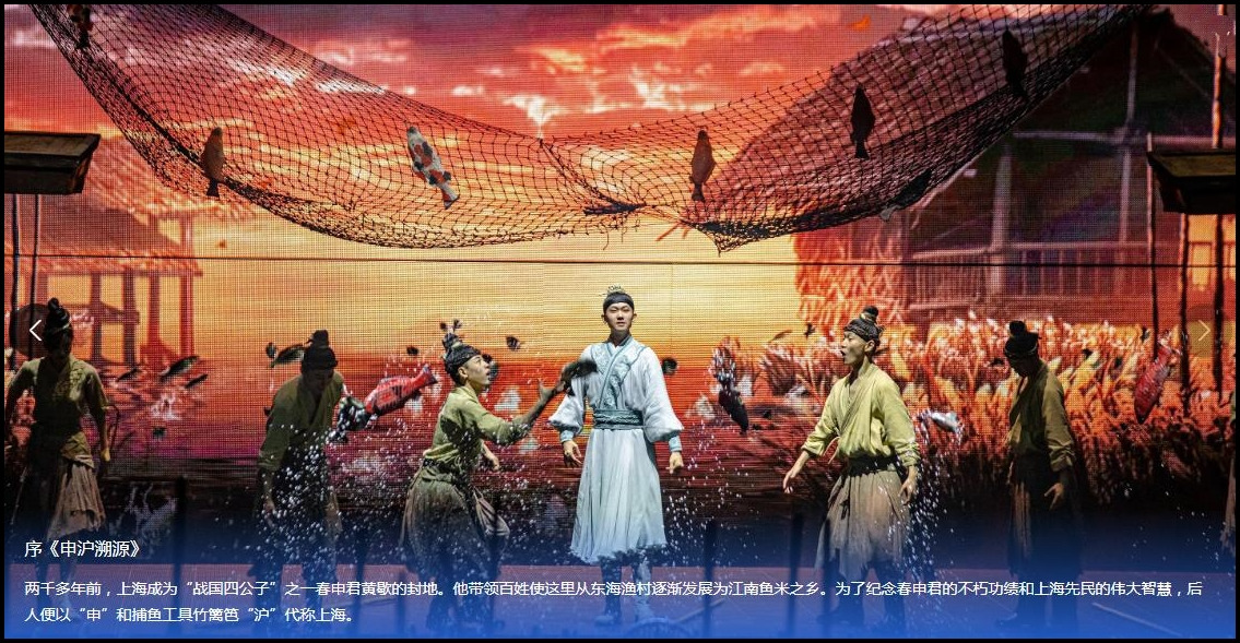 대형 가무 《상하이 천고정》은 상하이의 웅장한 역사 기록에 기반하여 상하이의 과거와 현재를 연출했습니다. 공연은 전국시대 봄 신군이 황푸강을 준설하여 위기를 극복하는 모습을 재현했습니다. 상하이 강남의 은은한 사랑스러움, 상하이 해변의 풍운, 십리양장의 현대적 세월, 각성 시대의 이상과 열정, 그리고 새로운 시대의 상하이는 나날이 새로워지고, 온갖 것을 포용하며, 엑스포와 푸둥의 개발 개방적인 문화적 핵심을 통해 상하이의 붉은 문화, 해파 문화, 강남 문화를 유감없이 드러냈습니다. 시각의 향연, 마음의 진동!