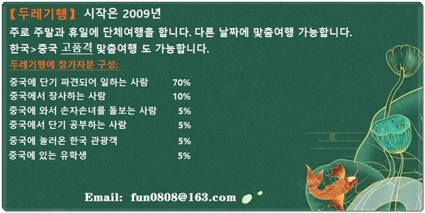 한국~ 중국 화동 전 지역 맞춤 여행 문의 환영합니다 !