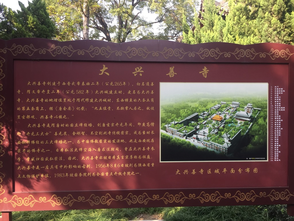 대흥선사(大兴善寺)는 중국 수,당시대(隋唐时期 수나라,당나라시대)때의 황실사원 이였고 중국 불교8종(佛教八宗)중 밀종(密宗)의 조정(祖庭)이며 발원지이였고 당시 장안성의 3대 역경장(译经场 경서를 번역하는 장소)중의 하나 이기도 합니다.