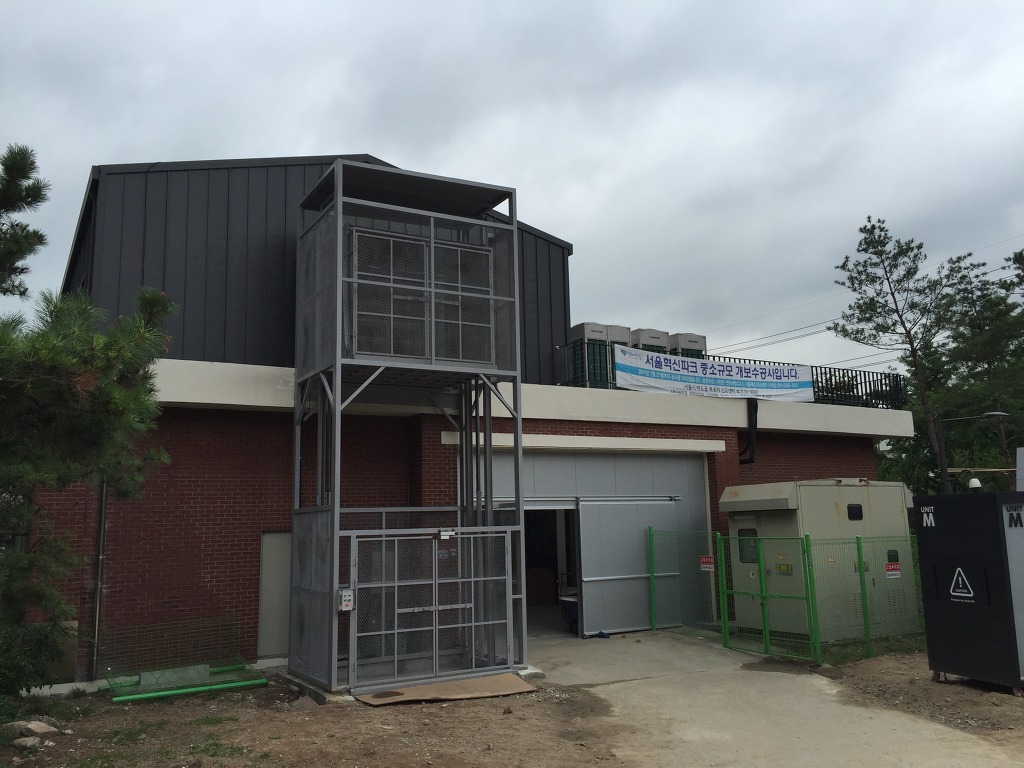 아래층은 디지털 팹랩이며, 화물용 승강기는 적정기술랩용입니다.
