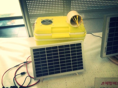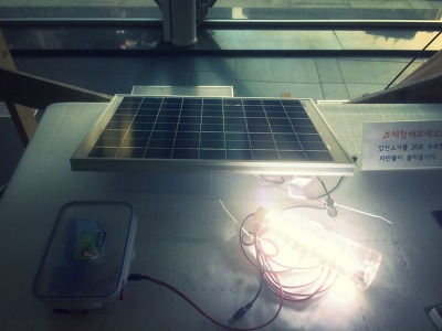 재활용품을 이용하여 구성한 태양광 발전기 시스템입니다.