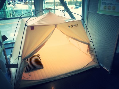 집 안에 텐트를 설치해서 난방비를 절약할 수도 있지요.