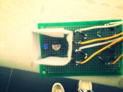 압전소자를 꾹꾹 누르면 이처럼 파란 불빛이 들어옵니다.