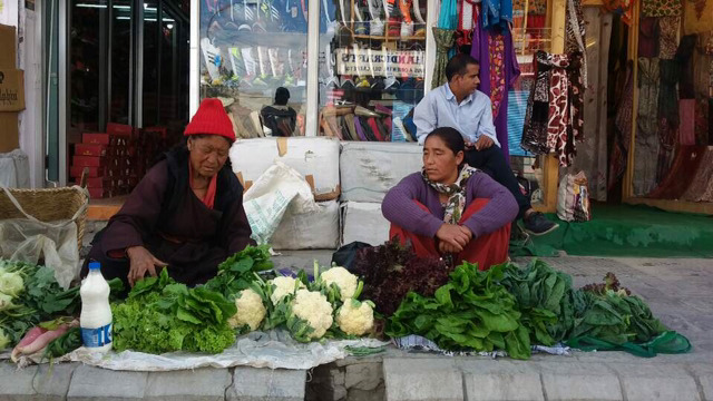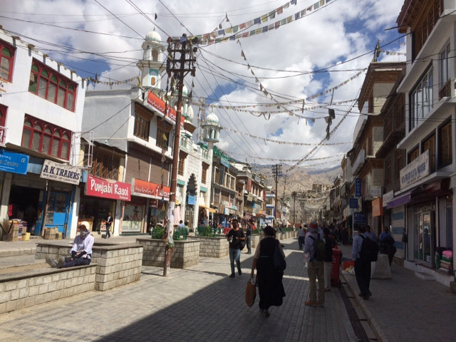 라다크의 중심도시 Leh(레)는 상업도시로서 혼잡하고 자동차로 인한 대기오염이 심각하다. 전통복장을 입고서 메인바자르(중심시장)에 나와 농작물을 파는 여인네들이 라다크의 이색적인 풍광을 대표하는듯 하다.