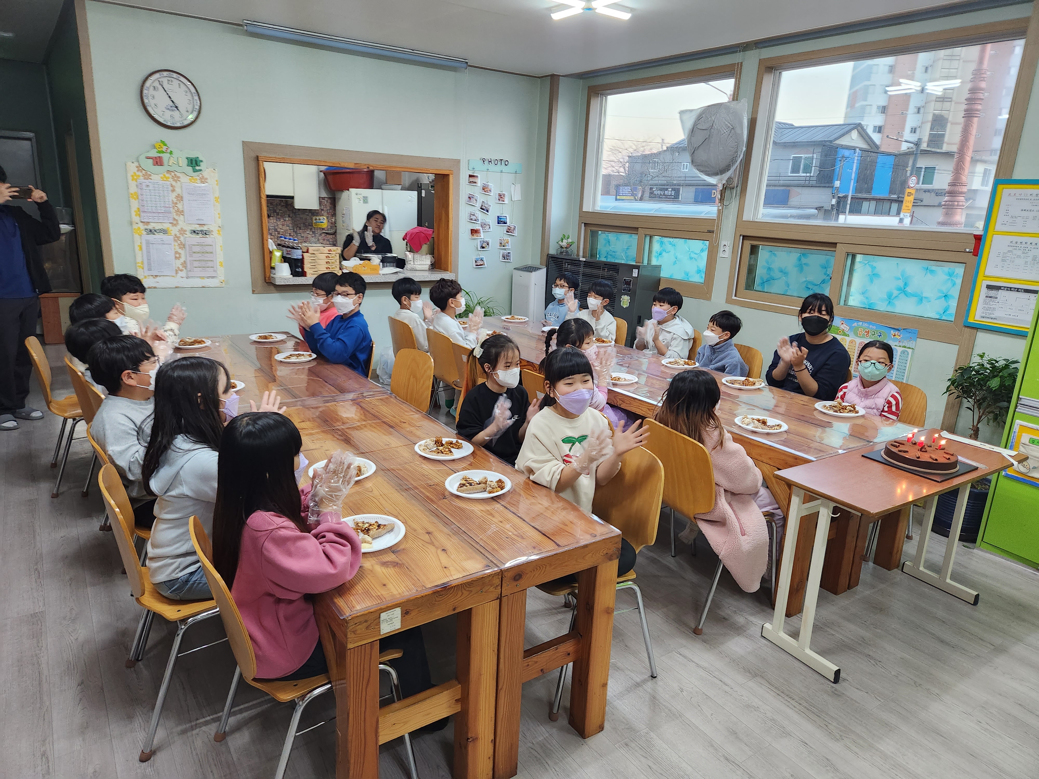 함께 즐겁게 피자, 치킨, 케익을 맛있게 나누어 먹고 즐겁게 생일파티를 할 수 있었습니다.