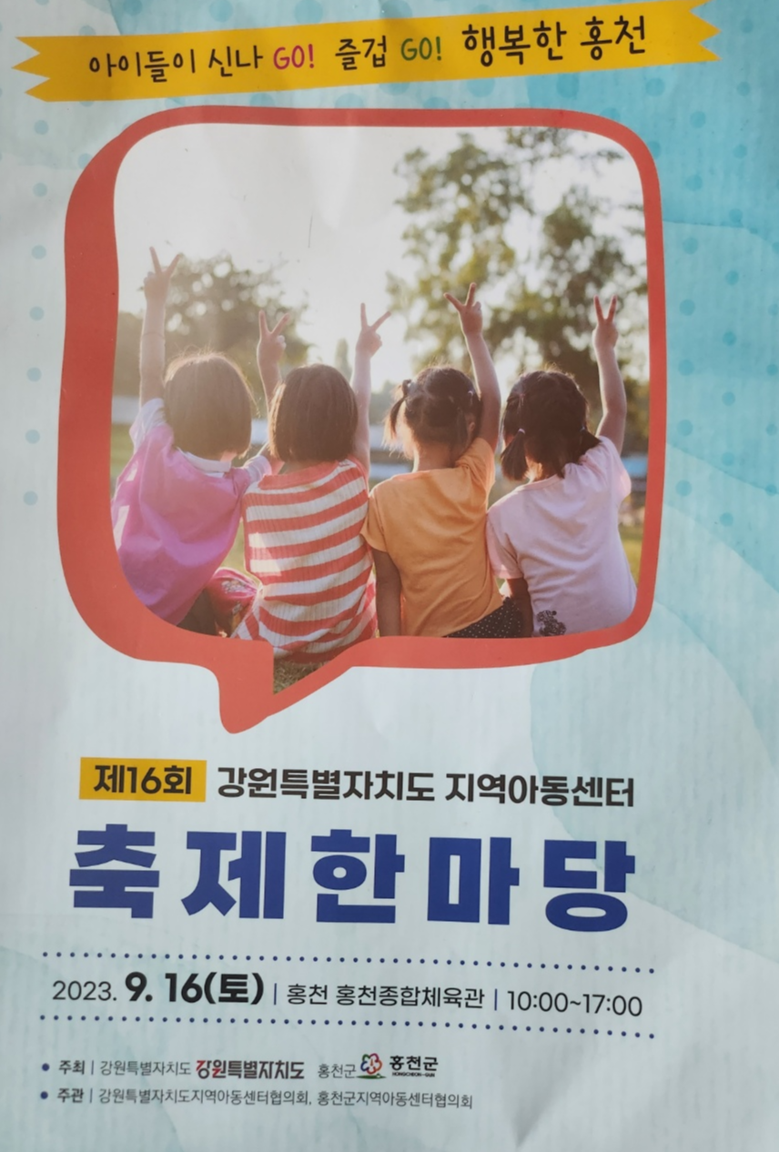 제16회 강원특별자치더 지역아동센타축제한마당이 홍천종합체육관에서 2023.9.16.(토)열렸다.