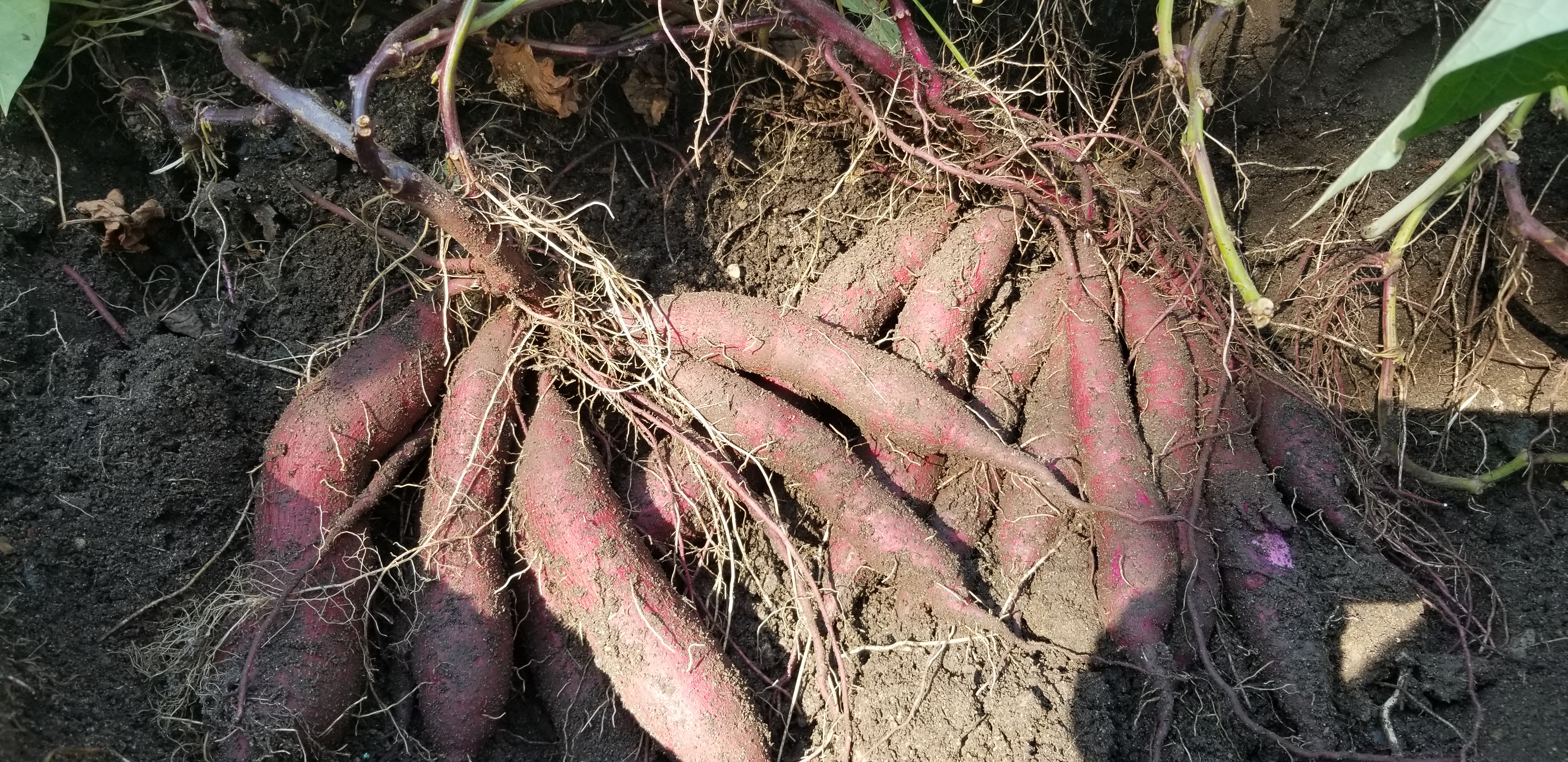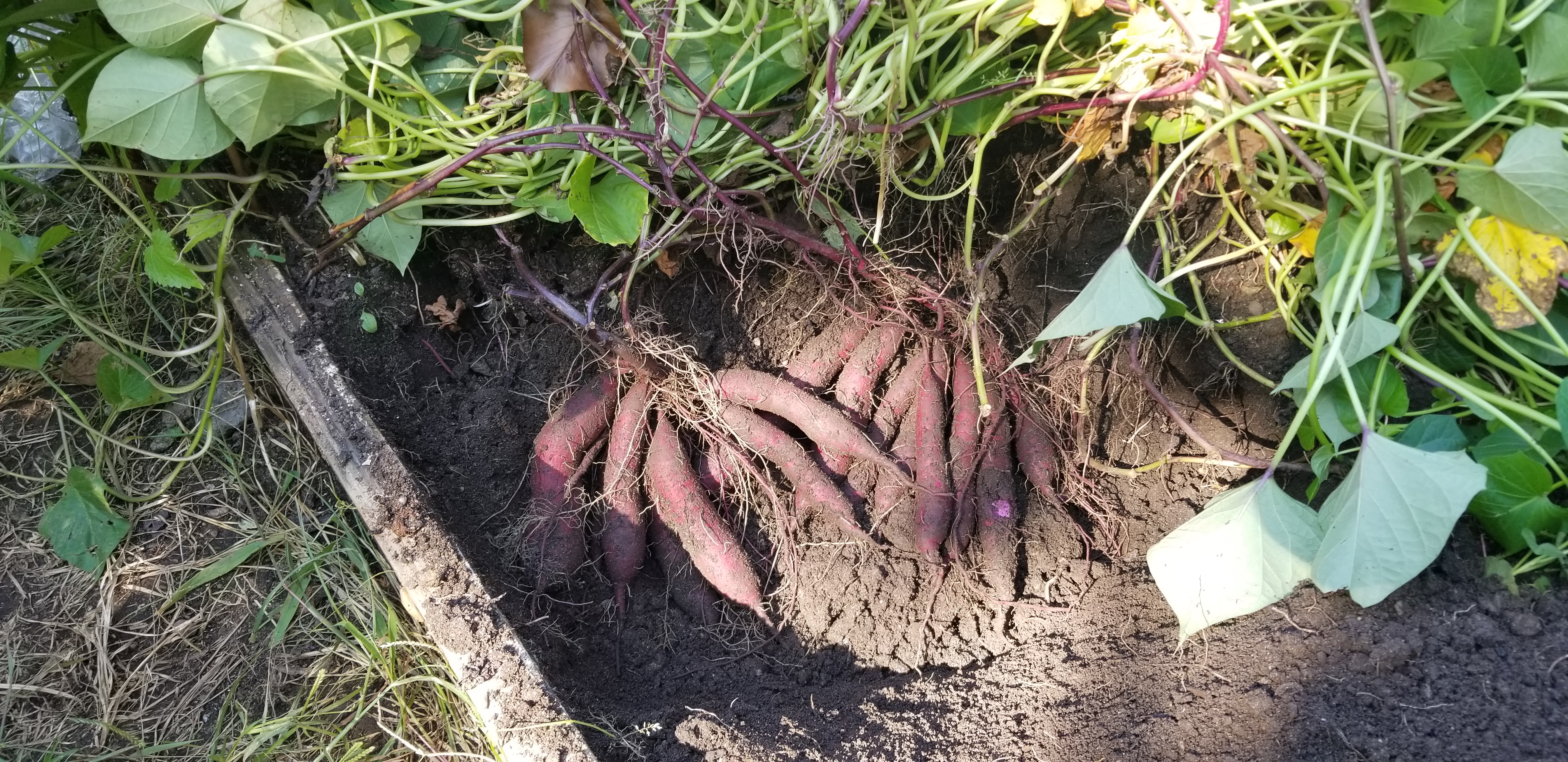 마늘을 심기 위해 다시 시비를 하고 석회도 뿌려 주려면.. 최소한 마늘을 심기 1-2주 전에는 고구마를 캐야 하는데.. 아직 120일이 안되었기 때문에.. 고구마가 얼마나 여물었나?? 맛뵈기로 두 줄기만 캐 보기로 했습니다.