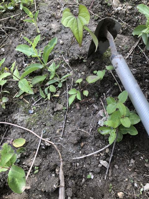 스텔스 호미로 비단풀 잡초를 꼭꼭꼭 찍고 긁어내고