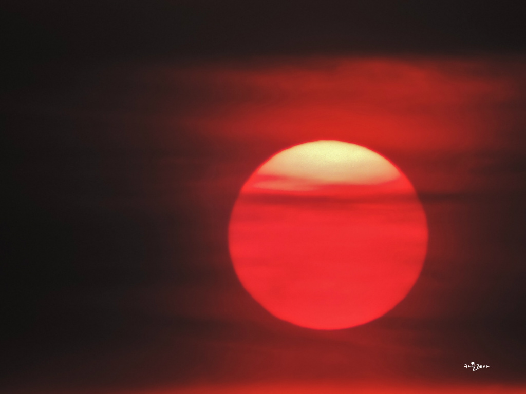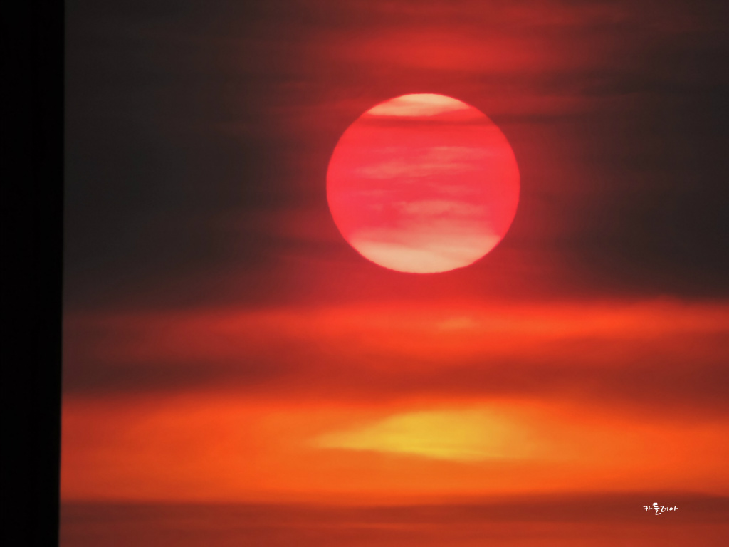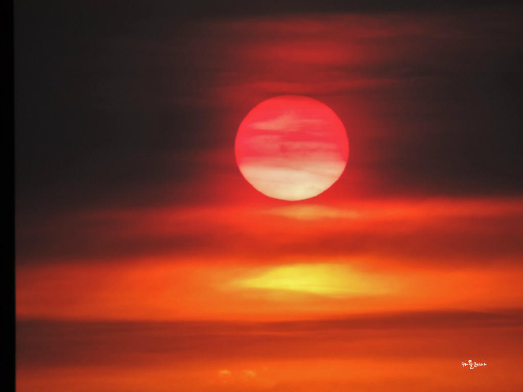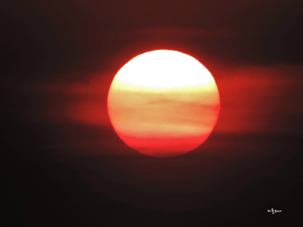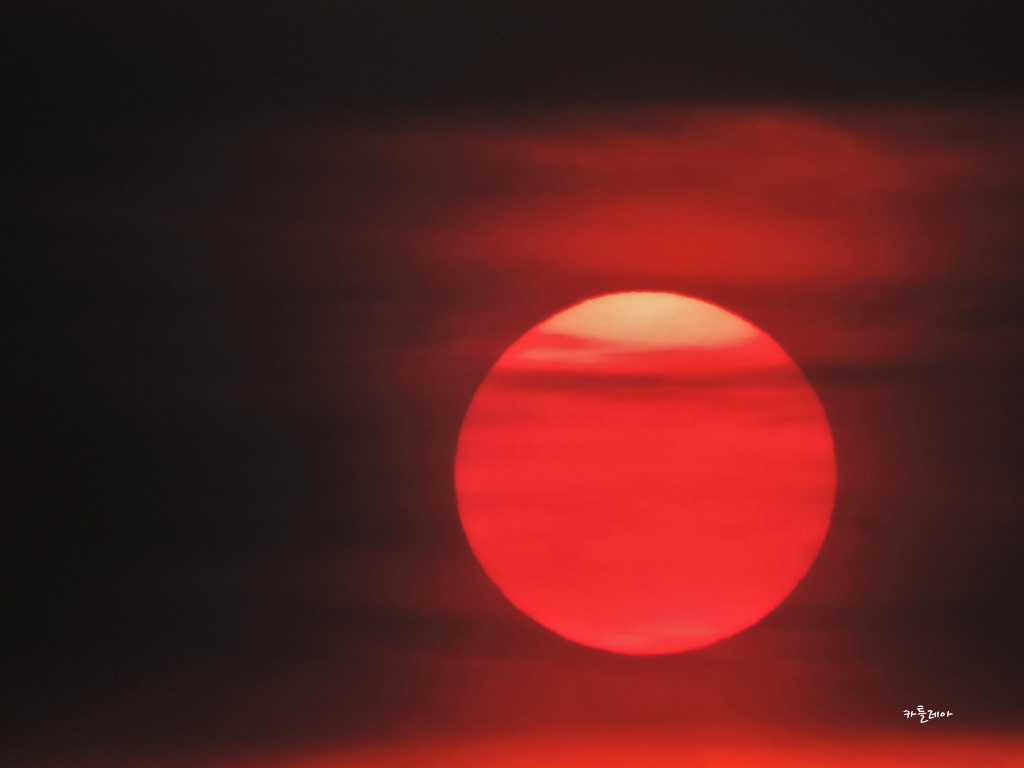 구름속에 살포시 가려져 붉게 떠오르는 태양이 어찌나 멋스러운지