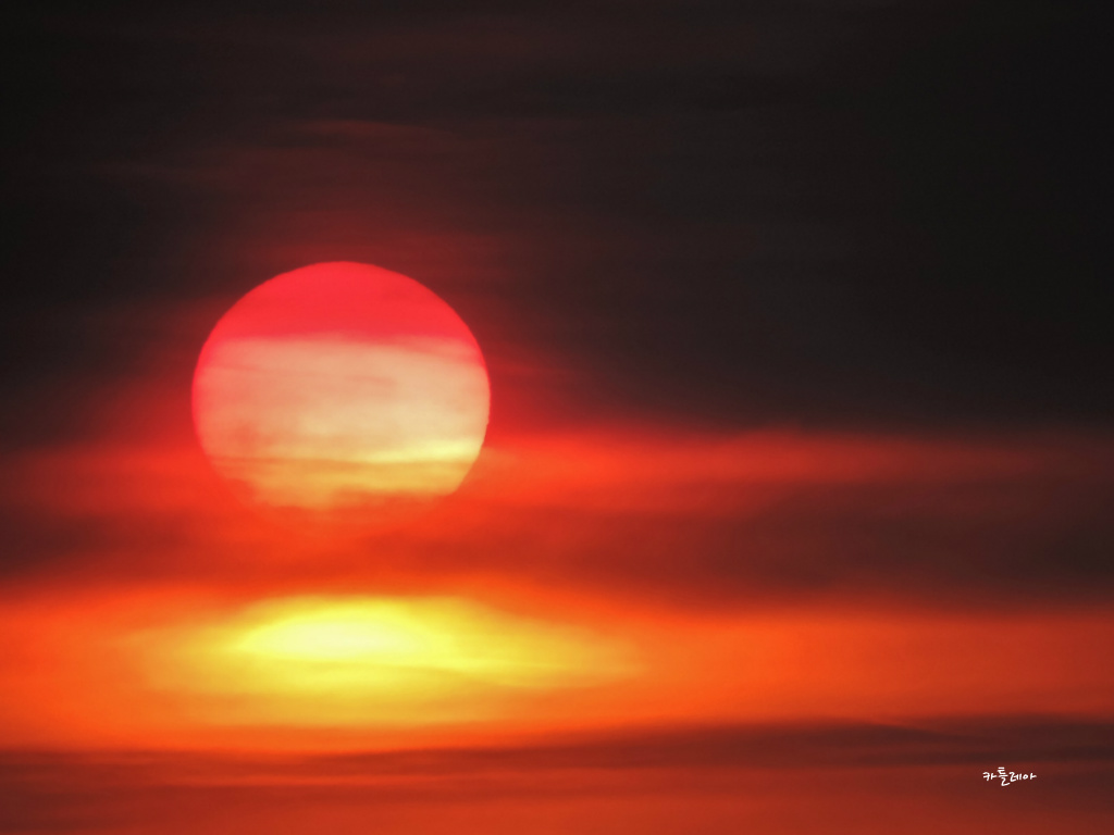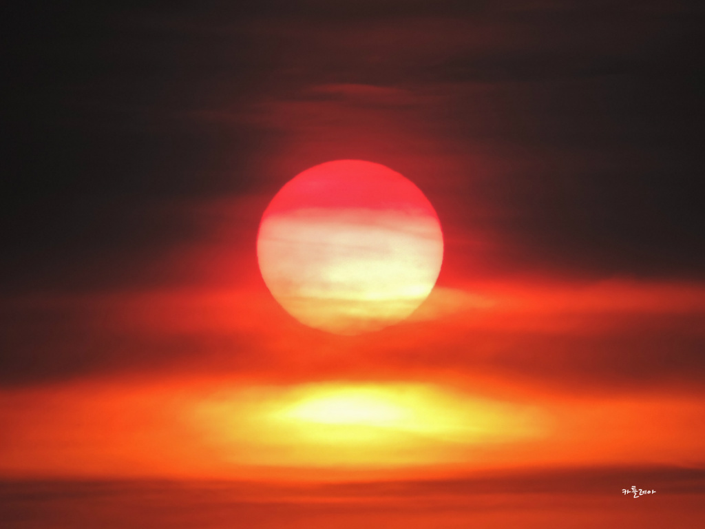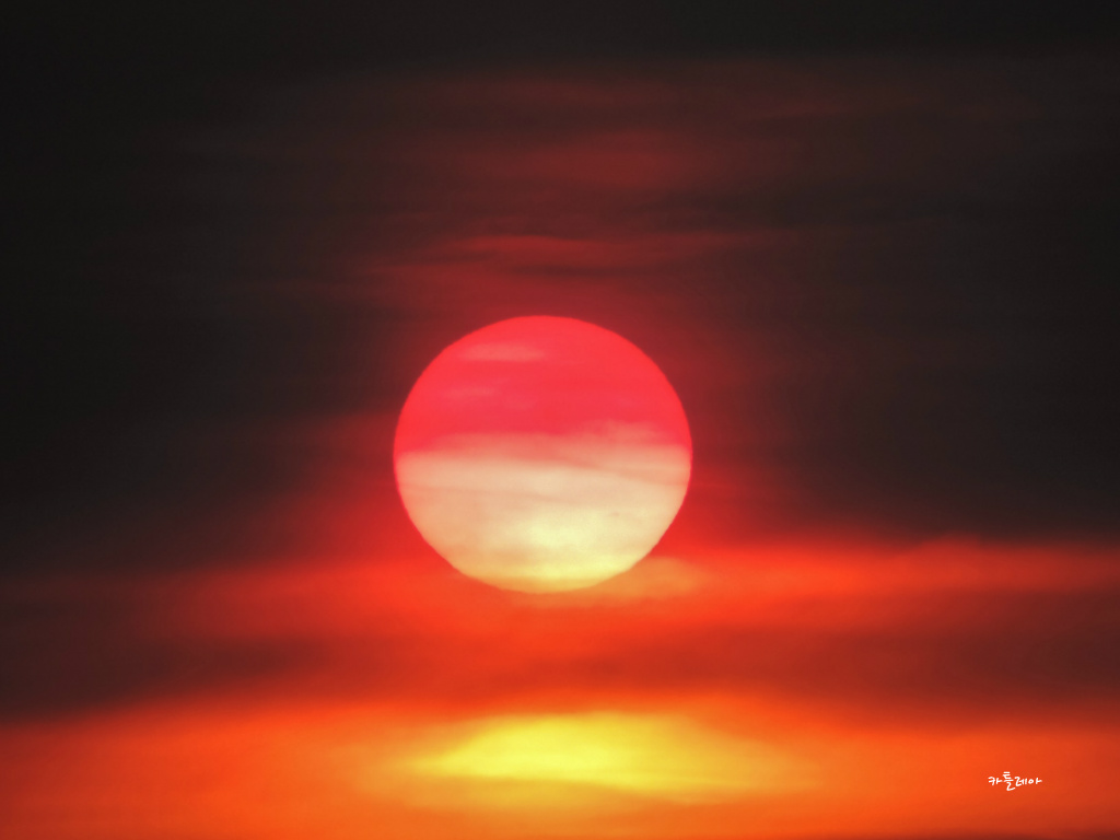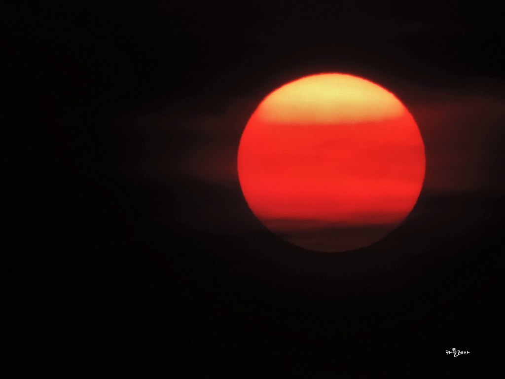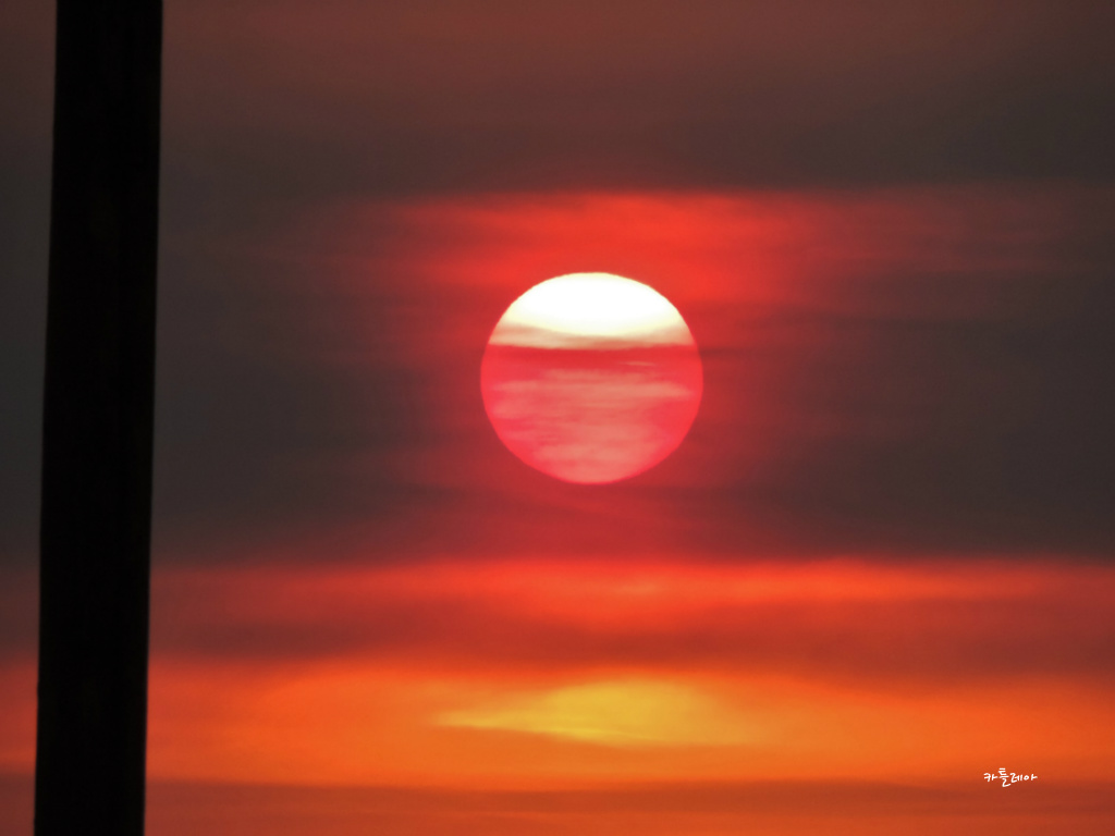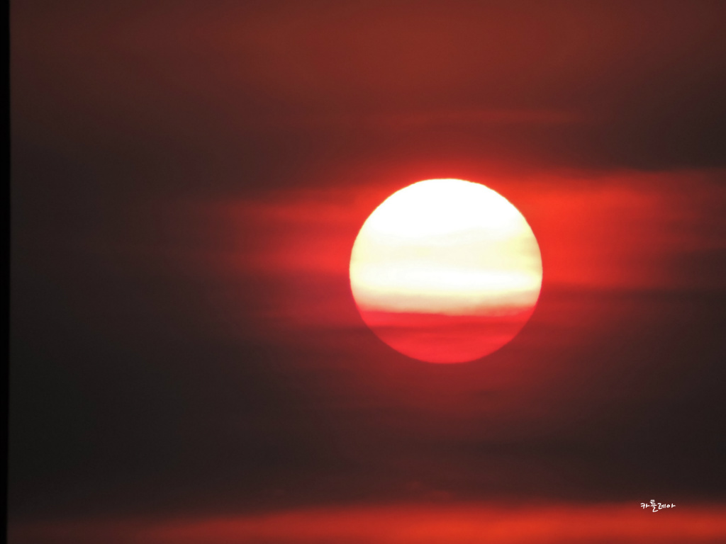 구름속에 살포시 가려져 붉게 떠오르는 태양이 어찌나 멋스러운지