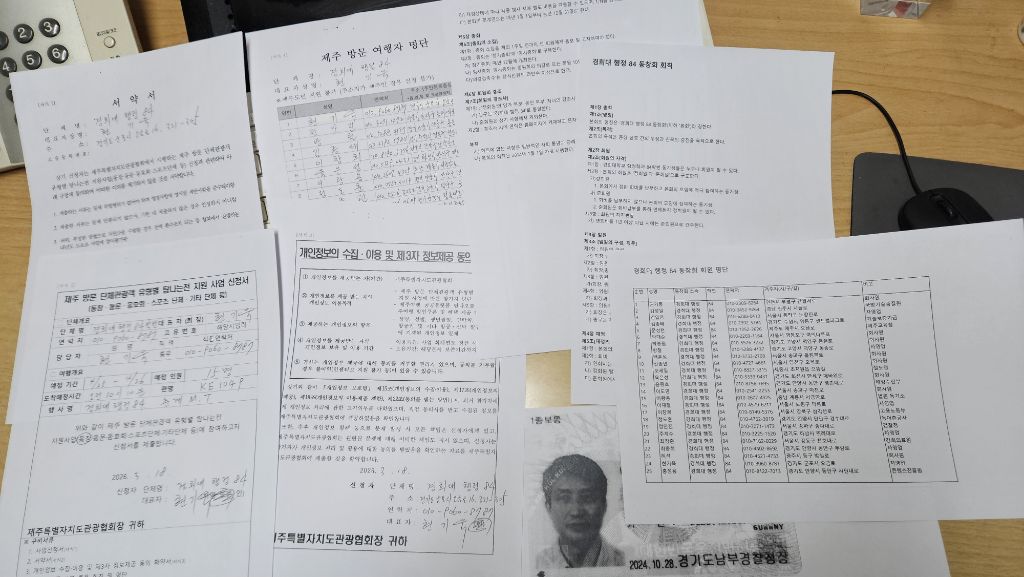 '탐나는전 지원사업 신청서', '서약서', '정보제공 동의 확인서', '제주 여행자 명단', '단체 회칙'및 '회원명부', '대표자 신분증' 사본 등이었다.