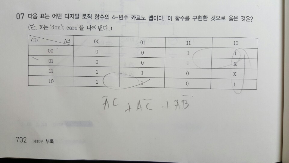 카르노 맵 질문입니다. 작성자이한진|작성시간16.06.21|조회수178 목록 댓글 3 글자크기 작게가 글자크기 크게가 정답이 2번이라고 나와있는데4번해석하면 저게 정답 아닌가요...? 다음검색 현재 게시글 추가 기능 열기 북마크 공유하기 신고 센터로 신고 댓글 댓글 3 댓글쓰기 답글쓰기 댓글 리스트 작성자최우영 | 작성시간 16.06.21 4번인데요.. 책에 2번으로 되어 있나요? 오타인가봅니다. 작성자최우영 | 작성시간 16.06.21 실제 기출문제는 4번 그림이 2번으로 가있네요... 출판사에서 편집하면서, 문제 보기 순서를 바꾸었네요.. 감사요.. 작성자이한진 작성자 본인 여부 작성자 | 작성시간 16.06.22 한참고민했는데..감사합니다! 댓글 전체보기