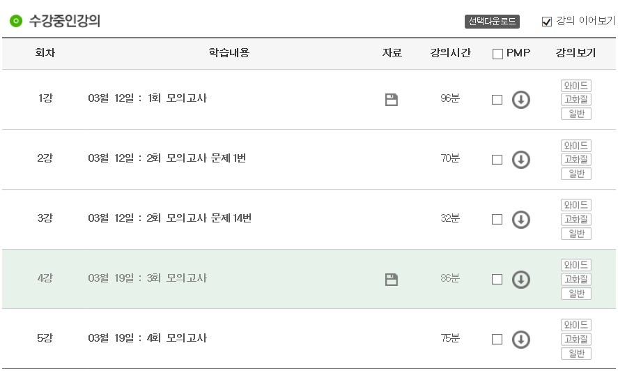 위 2개의 강의를 모두 인강으로 수강하고 있는 학생입니다.