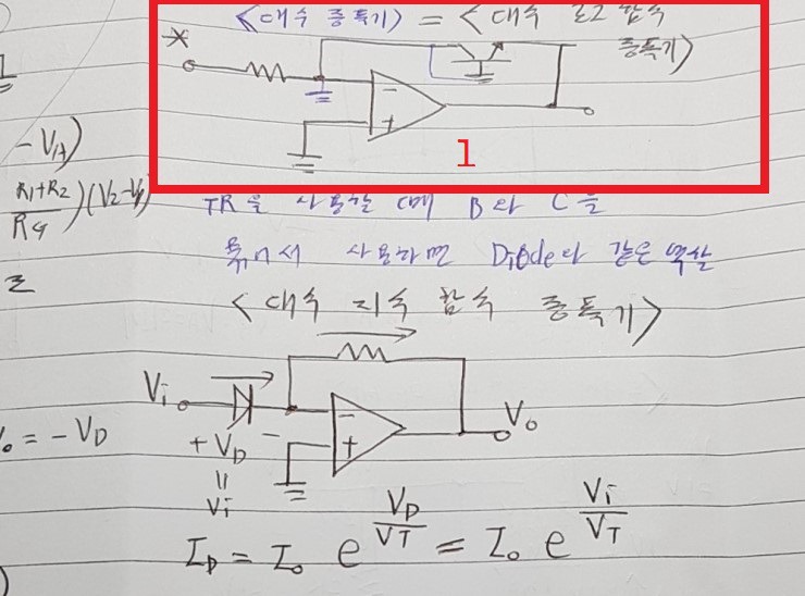 그리고 회로가 그림과 같이 OP-AMP에 저항과 다이오드로 이루어져 있으면 대수 증폭기로 보면 되는 건가요?