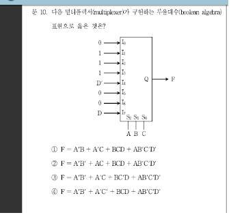 전자공학 멀티플렉서 부울대수 문제에서요