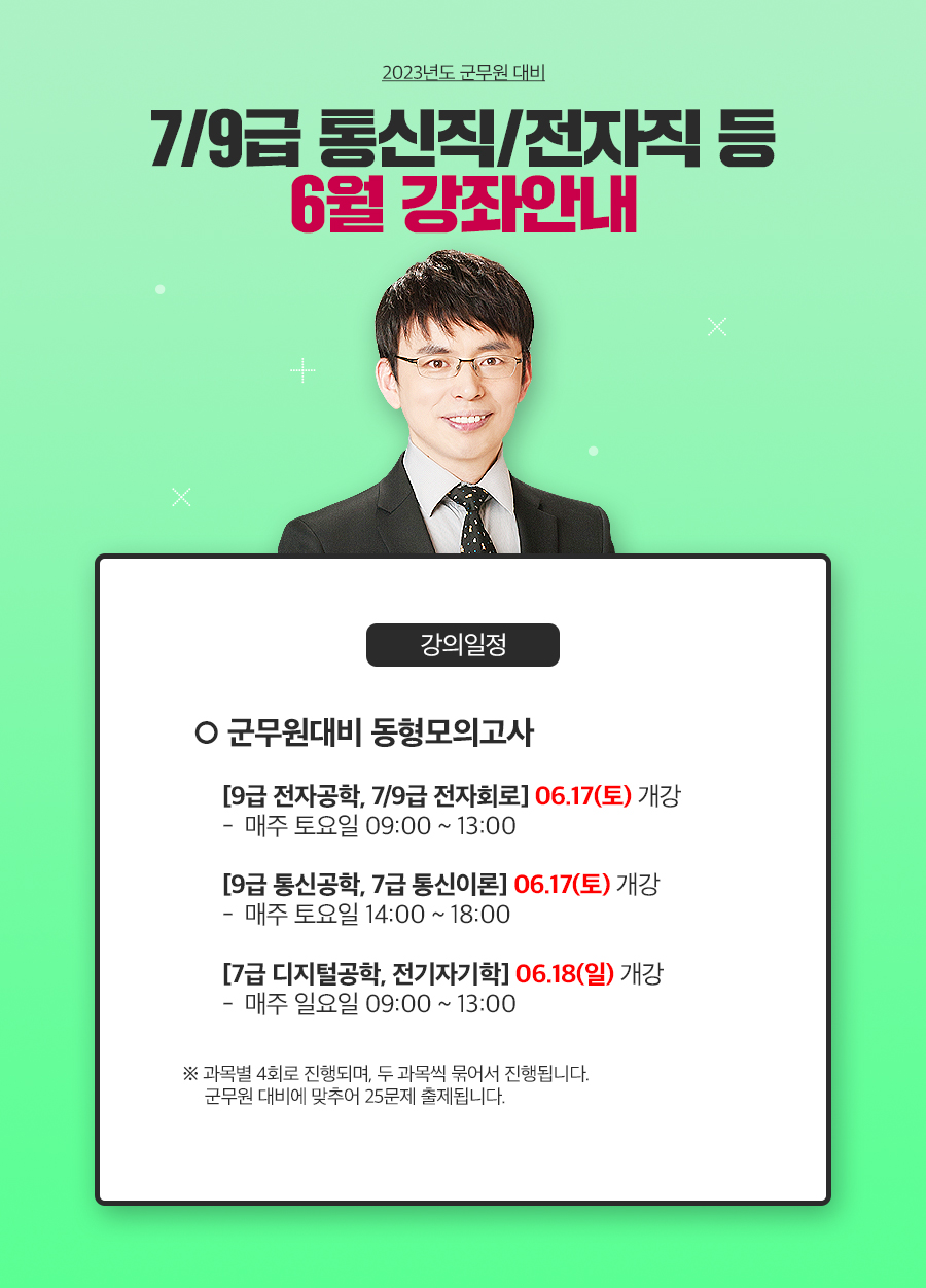 2023 군무원대비[7/9급 통신/전자직 등] 실전모의고사 작성자윌비스|작성시간23.06.08|조회수154 목록 댓글 0 글자크기 작게가 글자크기 크게가 실강 및 동영상 상담 : 1544-0330 / 070-4006-7168로 문의주세요. 위 이미지 클릭하시면 실강 수강신청 페이지로 이동합니다 다음검색 현재 게시글 추가 기능 열기 북마크 공유하기 신고 센터로 신고 댓글 댓글 0 댓글쓰기 답글쓰기 댓글 리스트