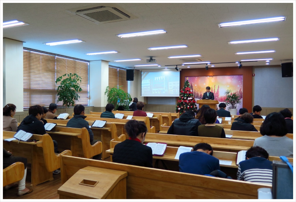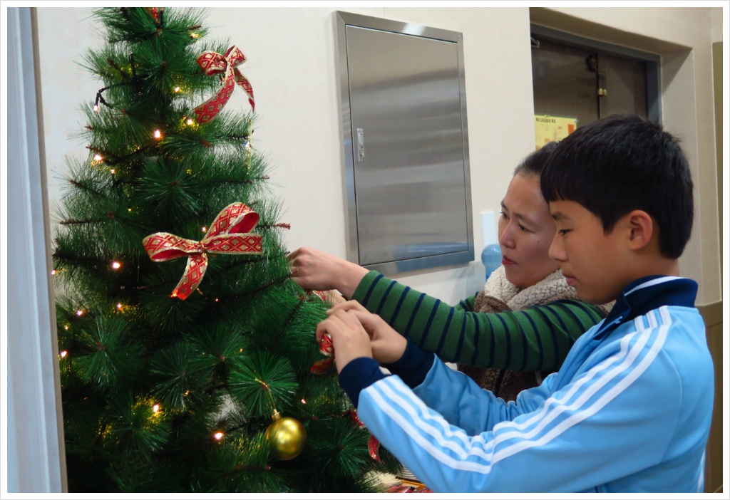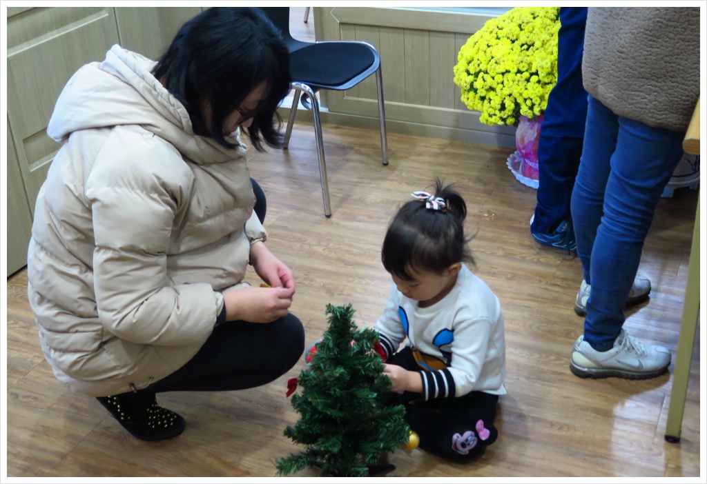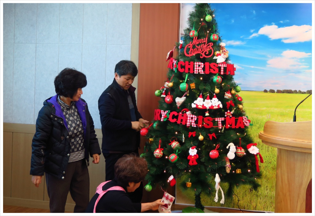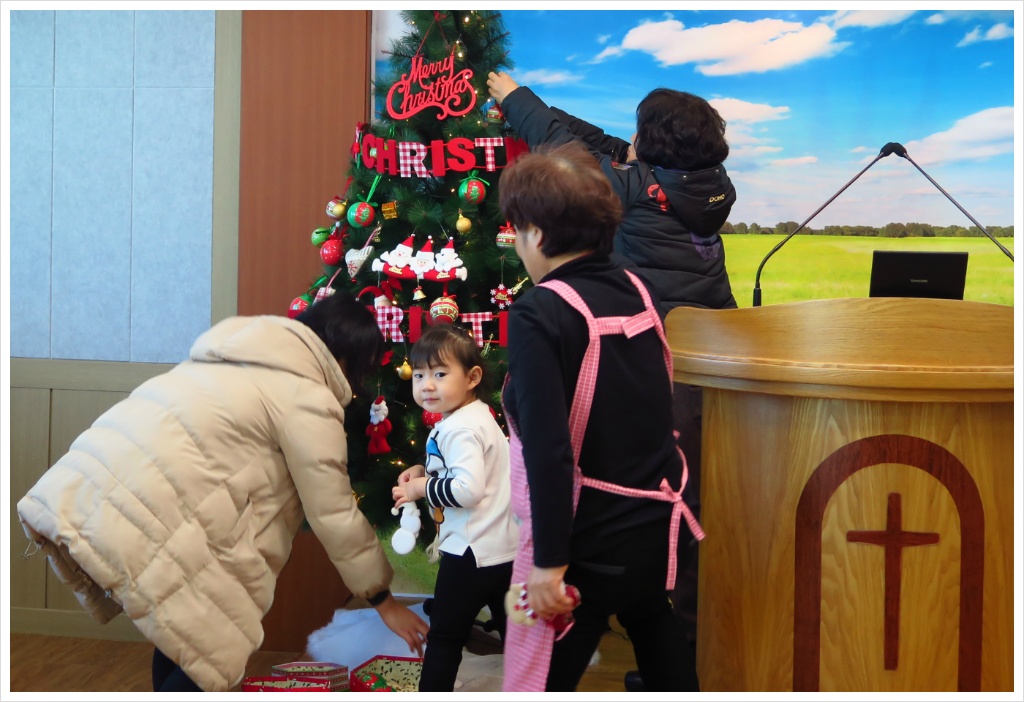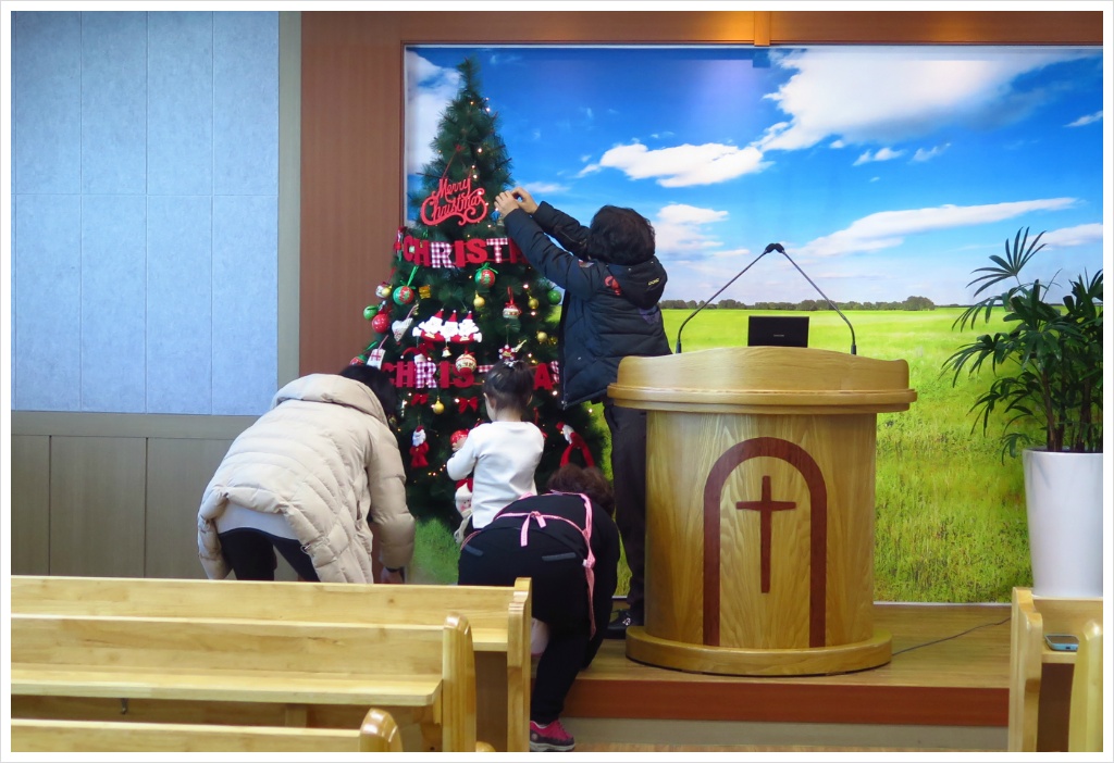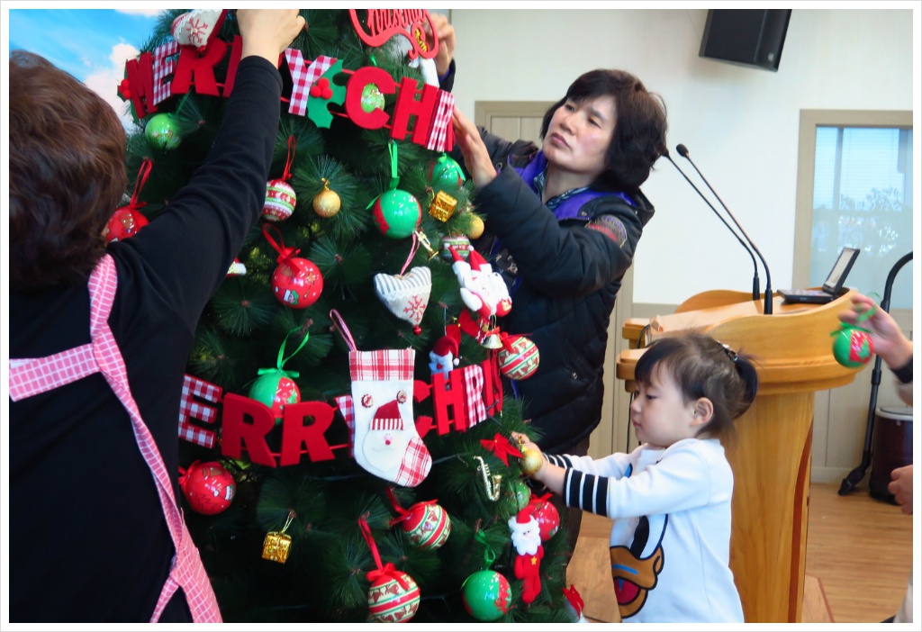 성도들과 아이들이 성탄절을 장식을 하면서 성탄의 의미를 다시 한번 되세기고 일년에 한번 하는