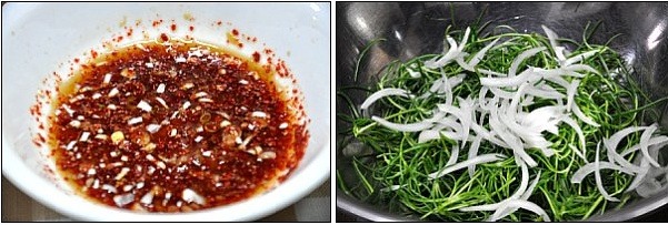 * 고추가루를 첨가하면 매운미나리 무침이 된다.