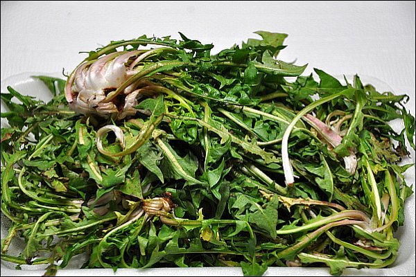 민들레는 밑둥을 완전히 자른뒤에 물에 흔들어 씻어서 물기를 빼준다.