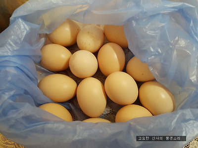 ▲ 왼쪽은 일반 계란, 오른쪽은 오골계 계란으로 조금 작습니다.