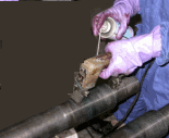 PT는 침투액을 뿌린 후 결함에 침투되어진 침투액을 현상액 위로 흡착시킴으로서 나타나는 표시들을 관찰함으로서 용접부 표면에 존재하는 결함을 찾아내고,