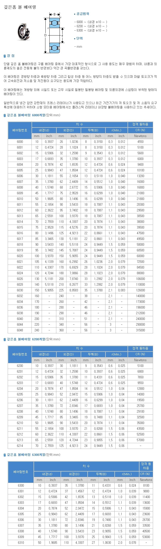 취급 브랜드 : KYK, GRB, BEM, NSK, NACHI, KBC 등. 취급 형번(내경 10mm ~ 80mm) 및 80mm 초과 볼 베어링