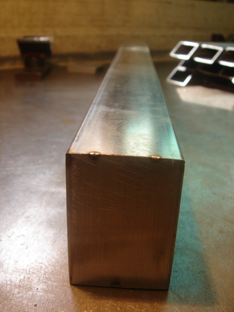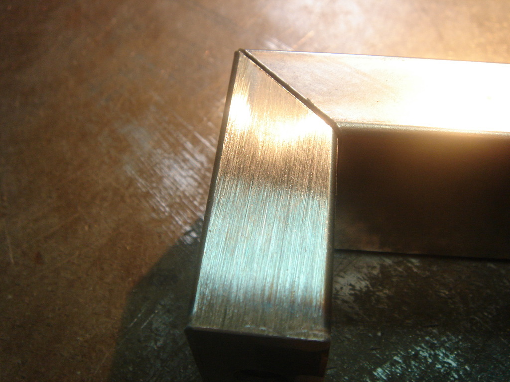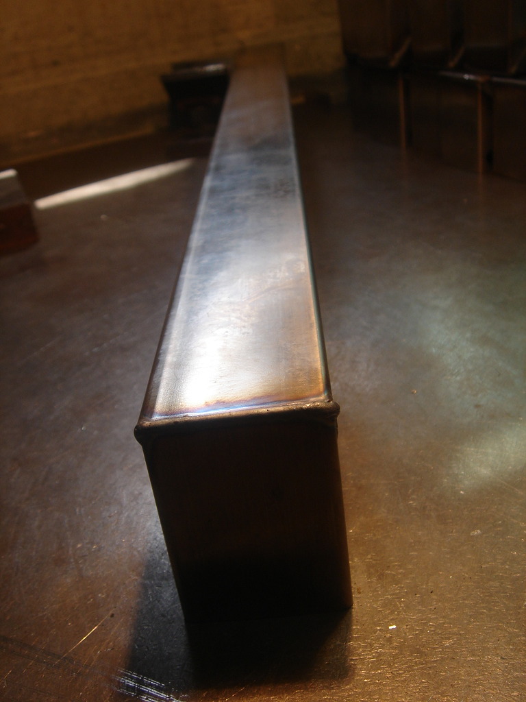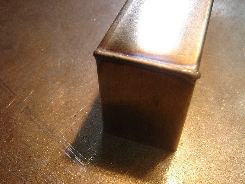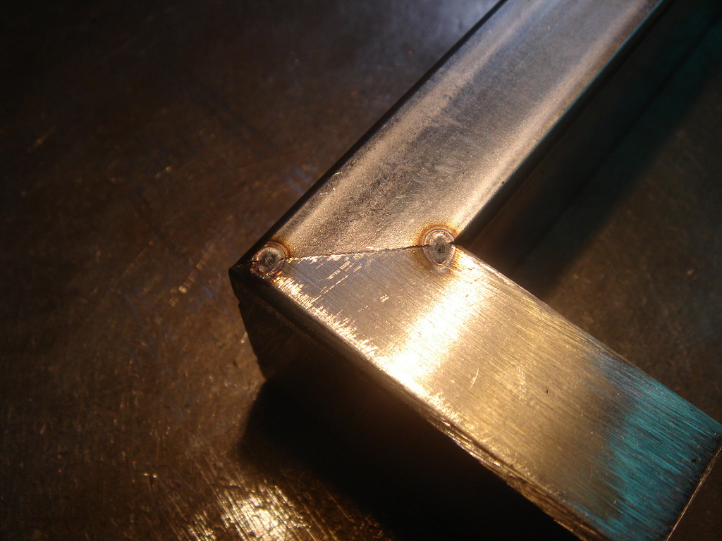 모서리 부분은 용접봉을 사용하지 않고 불꽃만을 이용해서 모재를 살짝 녹여서 서로 붙도록 합니다. 이부분 역시 오래 머무르면 녹아서 안쪽으로 꺼지는 현상이 발생합니다. 모서리 각이 죽지 않도록 한 번에 빠르게 진행하는게 포인트입니다.