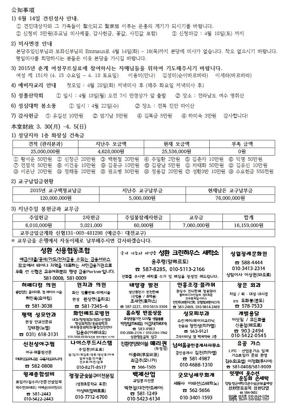 [주보]4월 12일 부활 제2주일 주보입니다 작성자사무장|작성시간15.04.10|조회수106 목록 댓글 0 글자크기 작게가 글자크기 크게가 본당주보 906호 4. 12.hwp 첨부파일첨부된 파일이 3개 있습니다. jpg 파일 본당주보 906호 4. 12001.jpg 다운로드 jpg 파일 본당주보 906호 4. 12002.jpg 다운로드 hwp 파일 본당주보 906호 4. 12.hwp 다운로드 다음검색 현재 게시글 추가 기능 열기 북마크 공유하기 신고 센터로 신고 댓글 댓글 0 댓글쓰기 답글쓰기 댓글 리스트