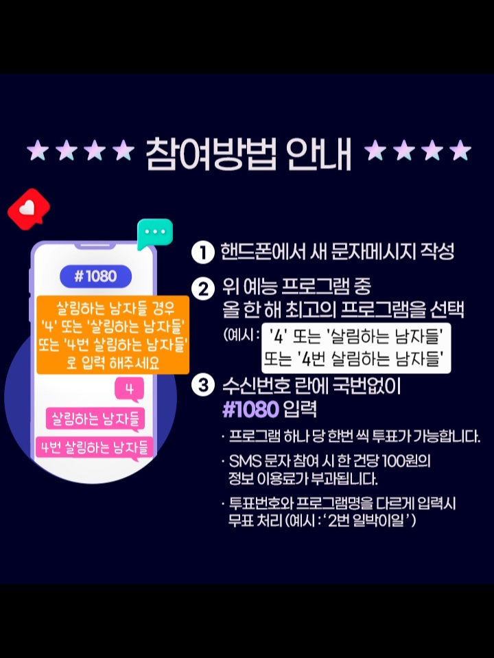 [문자 투표 참여시 건당 100원의 정보 이용료가 부과됩니다.]