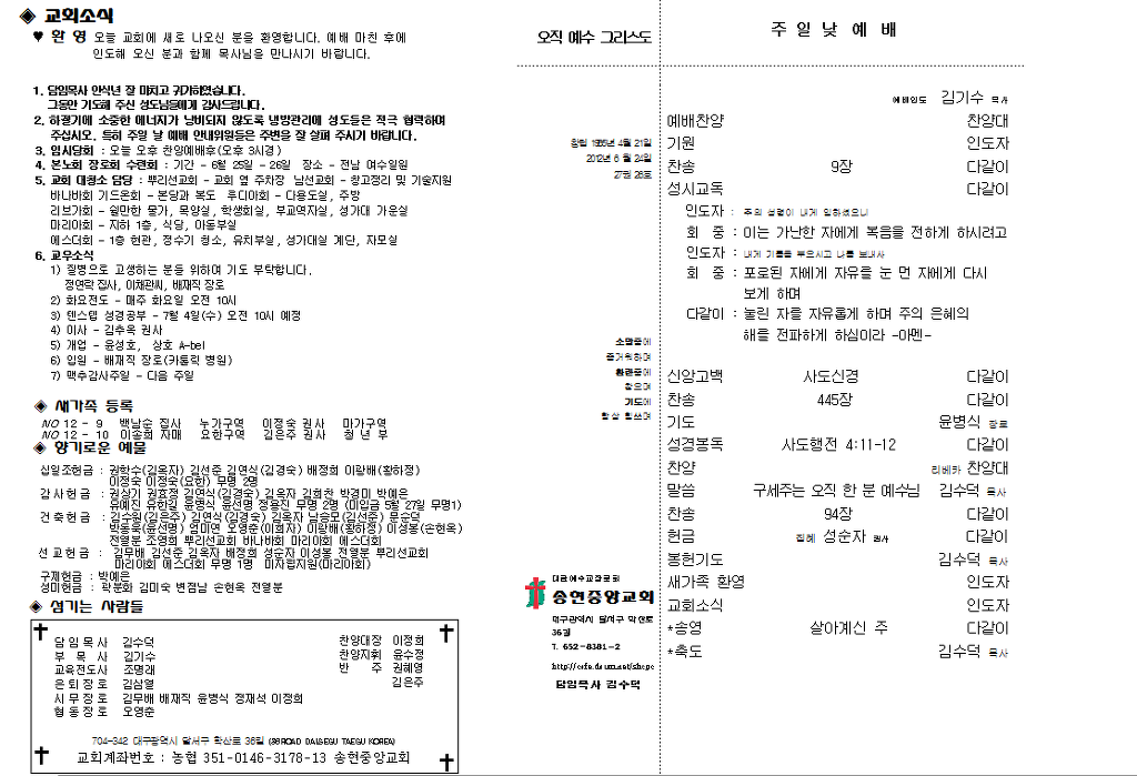 2012년 6월 24일 주보 작성자김기수|작성시간12.06.27|조회수10 목록 댓글 0 글자크기 작게가 글자크기 크게가 다음검색 현재 게시글 추가 기능 열기 북마크 공유하기 신고 센터로 신고 댓글 댓글 0 댓글쓰기 답글쓰기 댓글 리스트