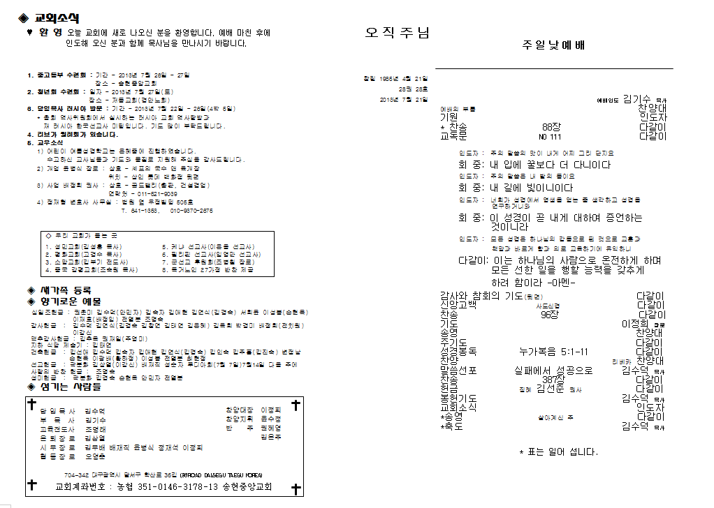 2013년 7월 21일 주보 작성자김기수|작성시간13.07.21|조회수8 목록 댓글 0 글자크기 작게가 글자크기 크게가 다음검색 현재 게시글 추가 기능 열기 북마크 공유하기 신고 센터로 신고 댓글 댓글 0 댓글쓰기 답글쓰기 댓글 리스트