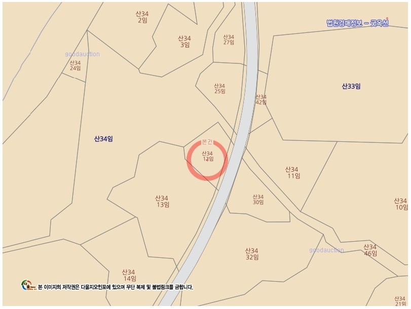1. 물건위치 : 제주특별자치도 제주시 구좌읍 월정리 산34-12, 토지 임야