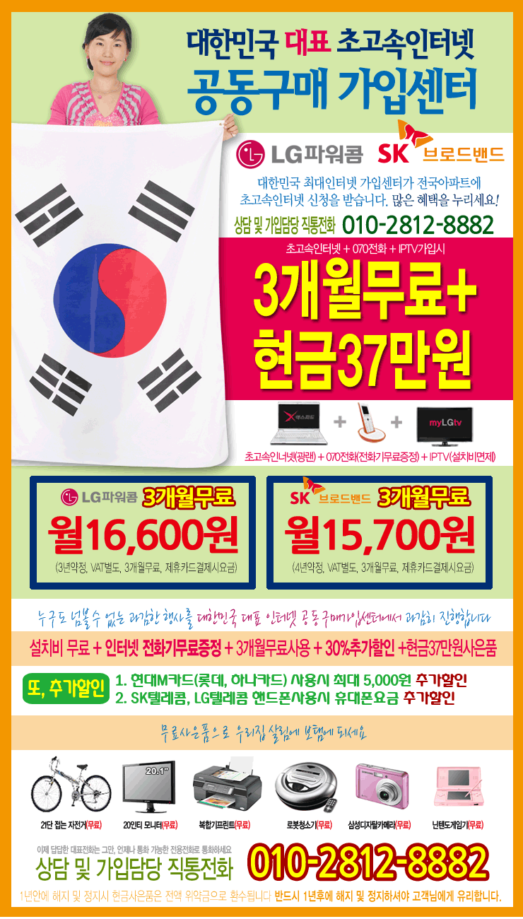 ▷▶LG파워콤, SK브로드밴드 인터넷신청 ★현금37만원★3개월 무료사용★30%요금할인★월16,600★ 대한민국 대표 인터넷 공동구매 신청◀◁ 작성자대한민국 대표 인터넷가입센터|작성시간09.08.18|조회수5 목록 댓글 0 글자크기 작게가 글자크기 크게가 다음검색 현재 게시글 추가 기능 열기 북마크 공유하기 신고 센터로 신고 댓글 댓글 0 댓글쓰기 답글쓰기 댓글 리스트