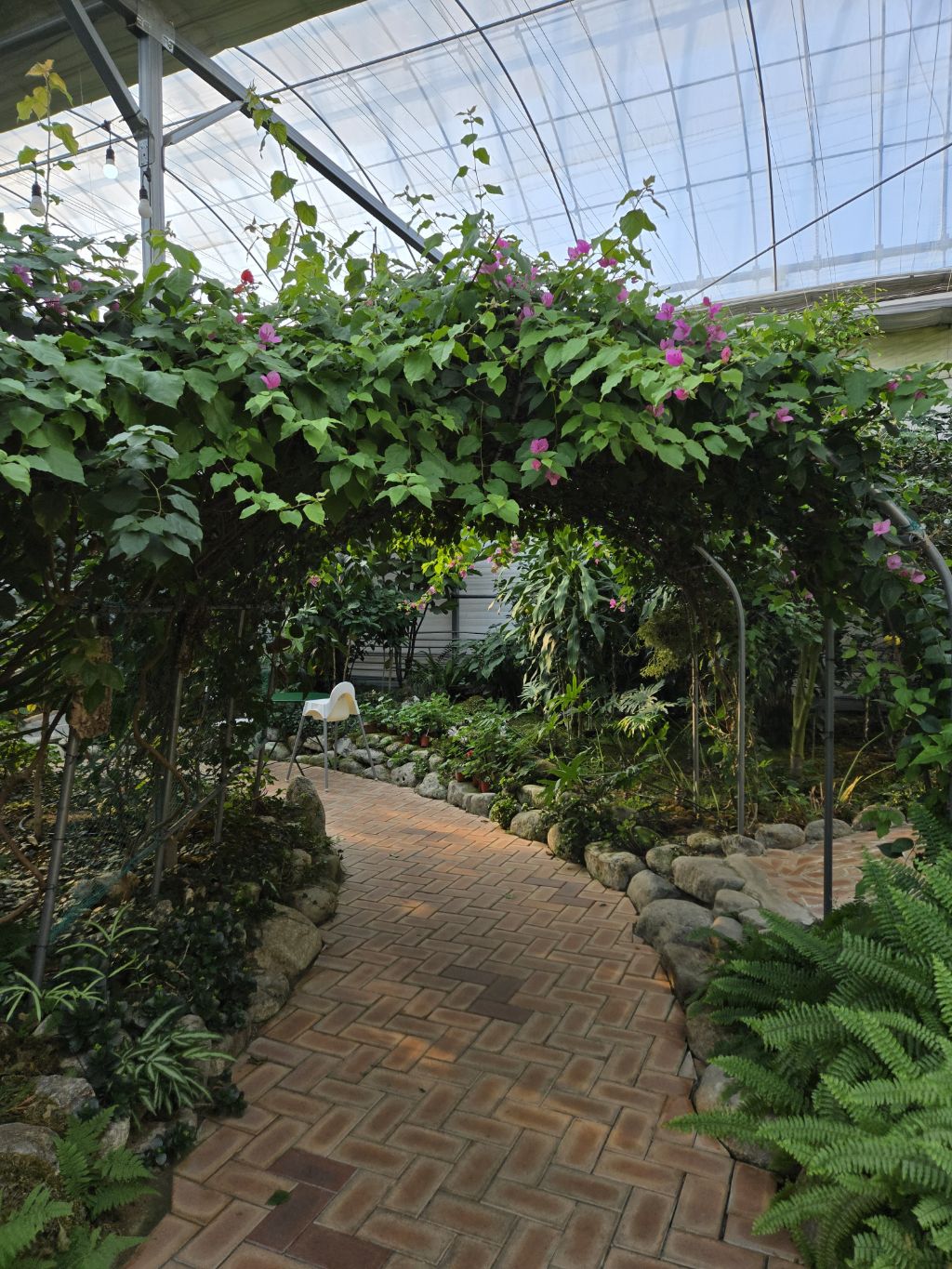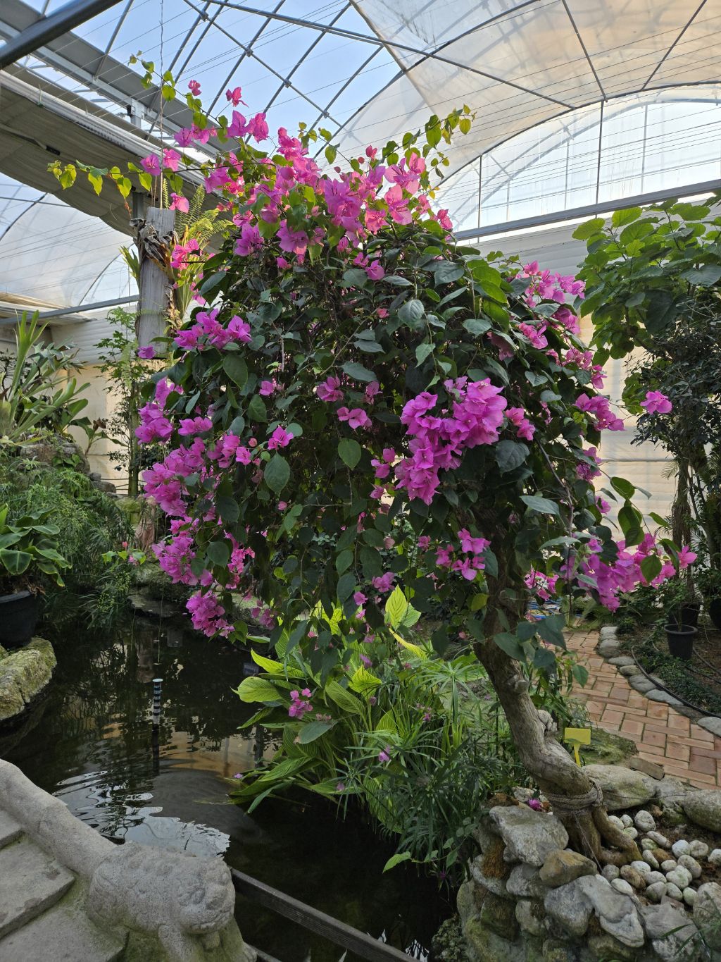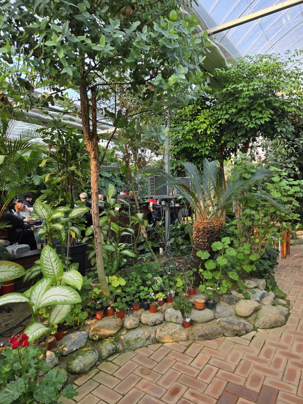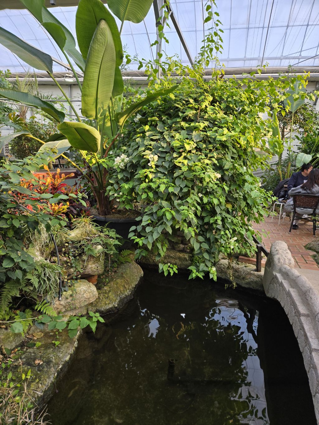 온실에 열대식물을 잘 꾸며놓고 따스해서 그런지~