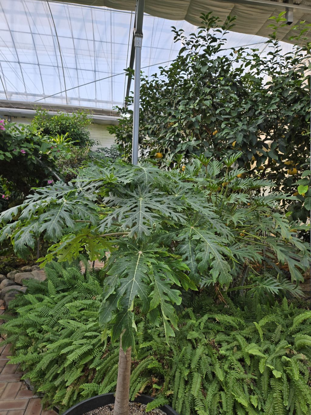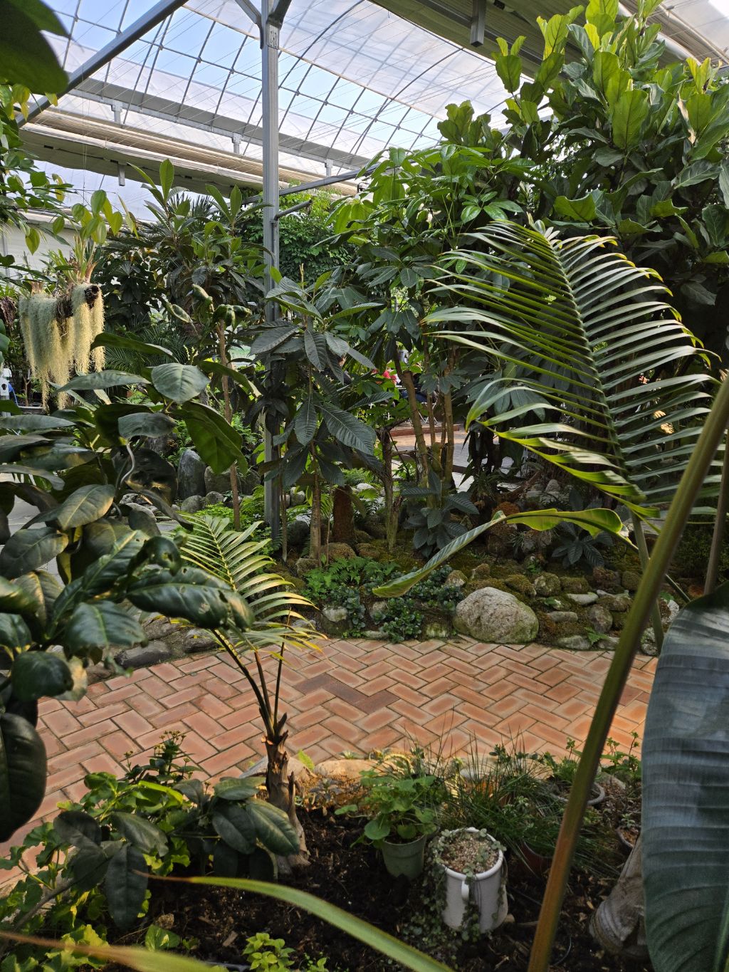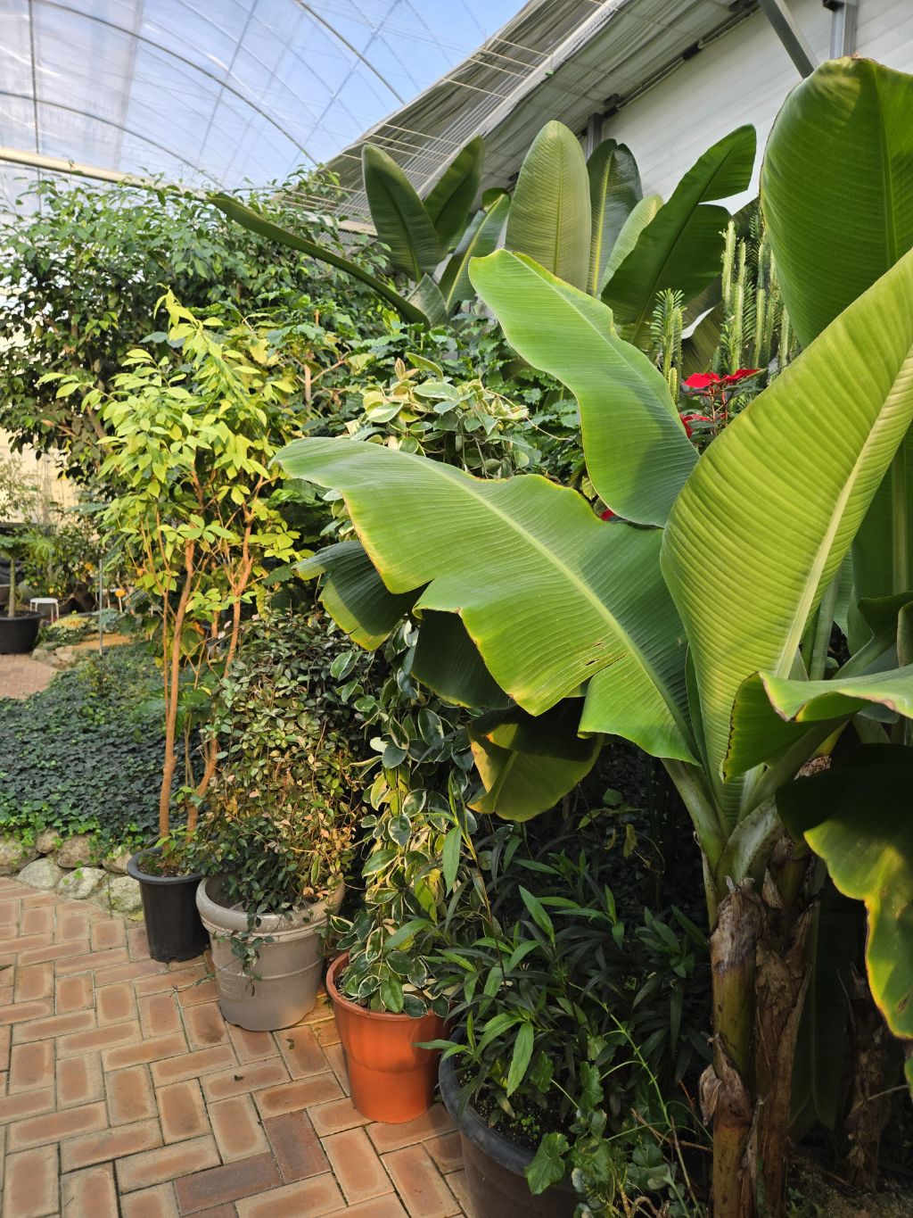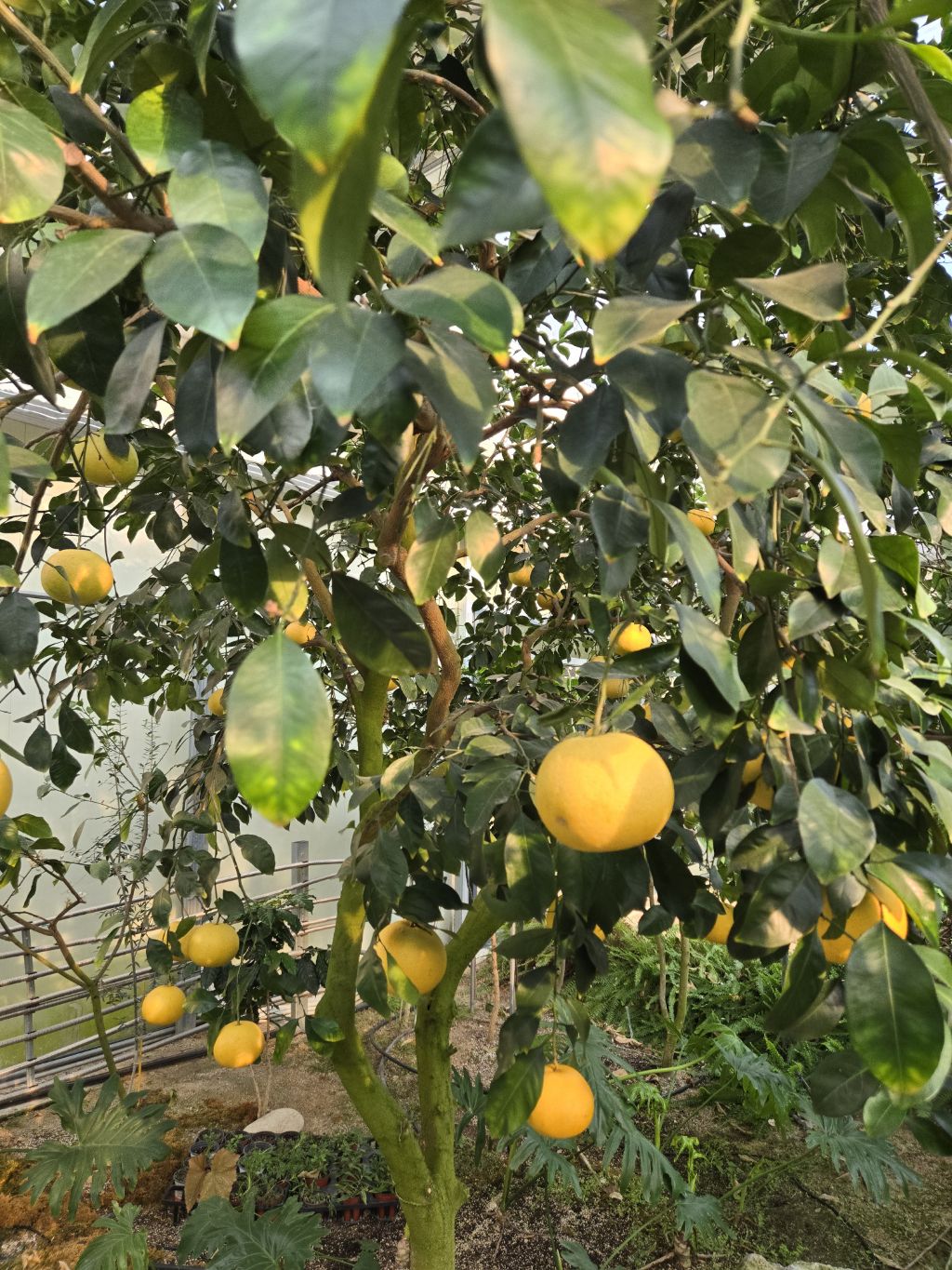 온실에 열대식물을 잘 꾸며놓고 따스해서 그런지~
