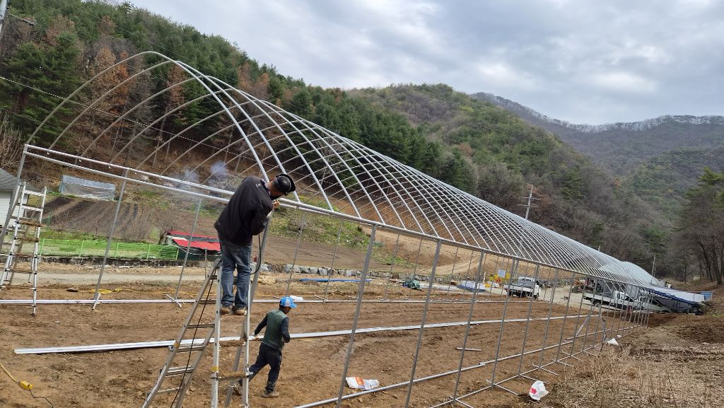 골조 시작입니다 48mm 파이프로 기둥세우고