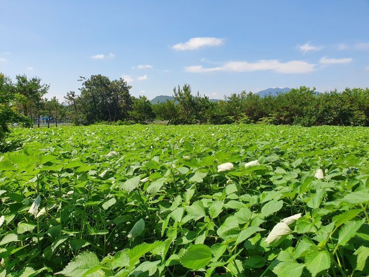 친환경법으로 키운 모싯잎 저희 농장입니다.