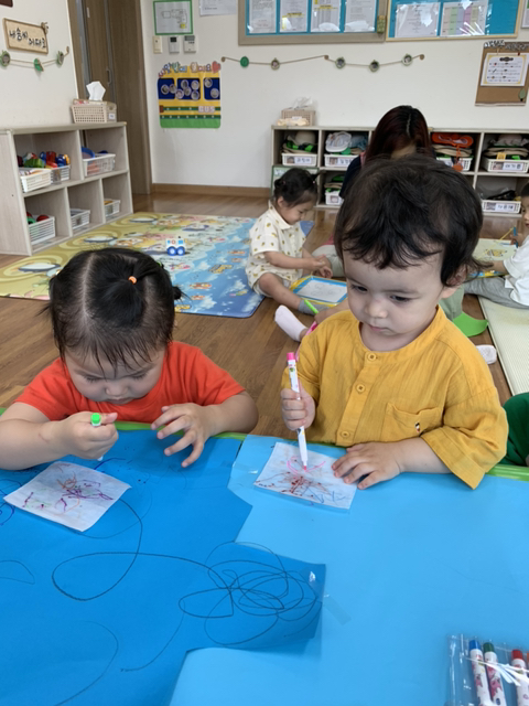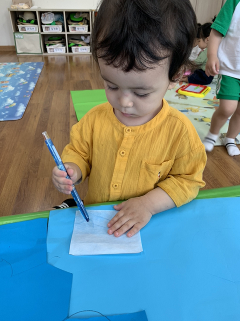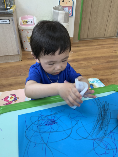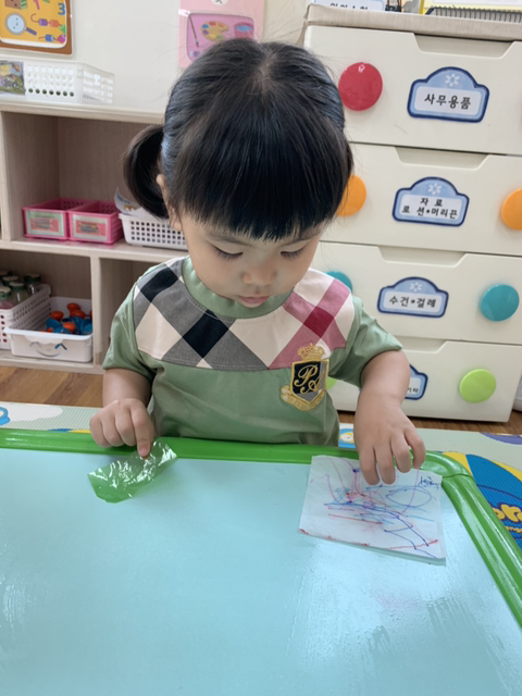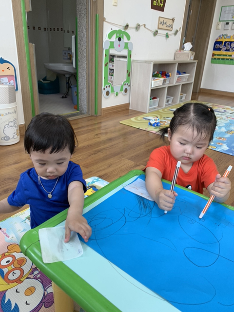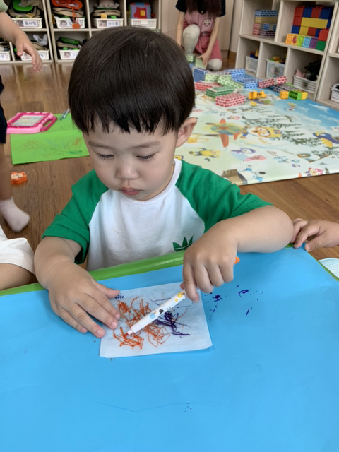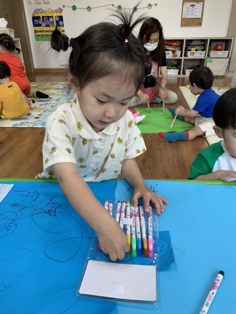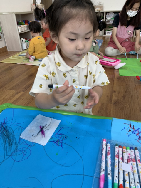 우리 똑똑이들 색연필에 색이 잘 보이지 않으니깐