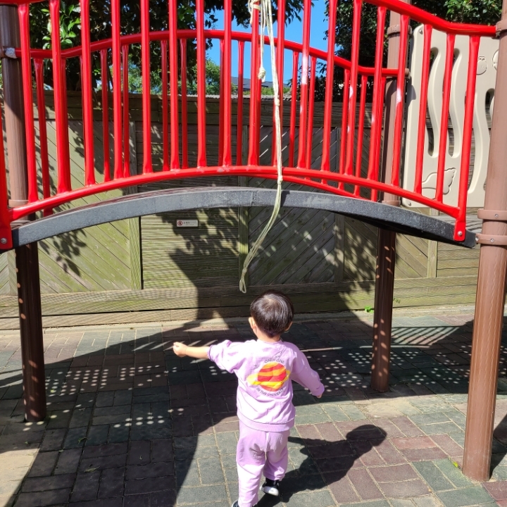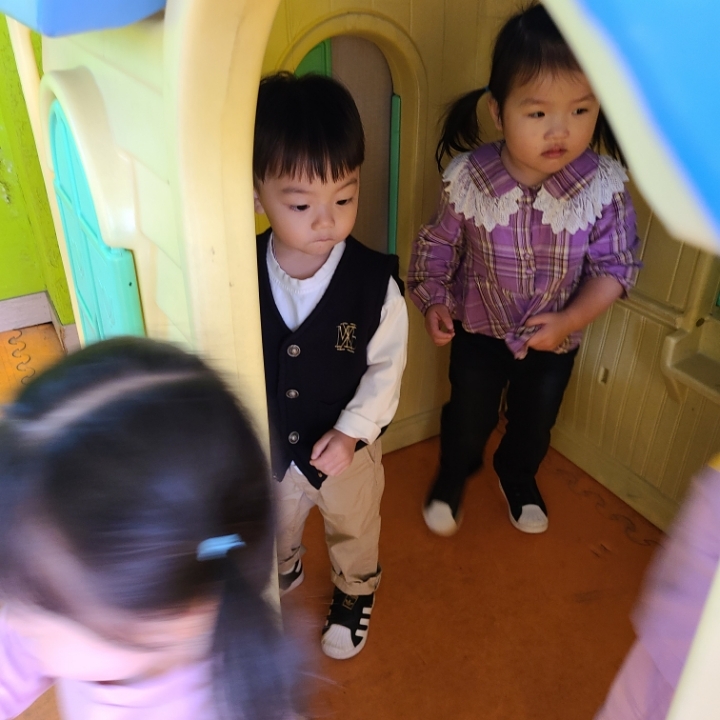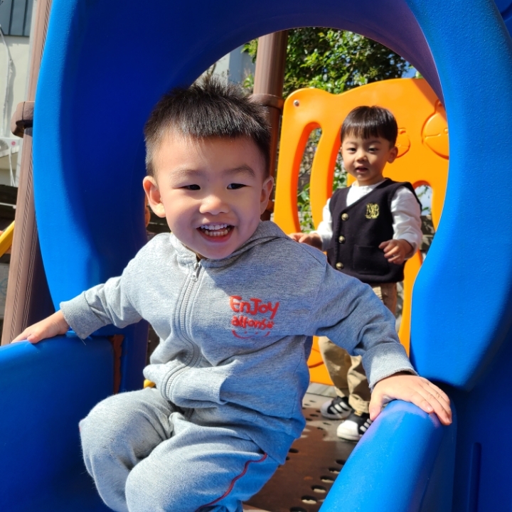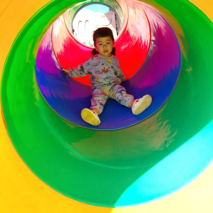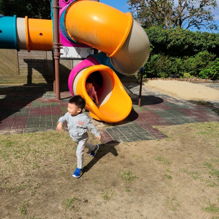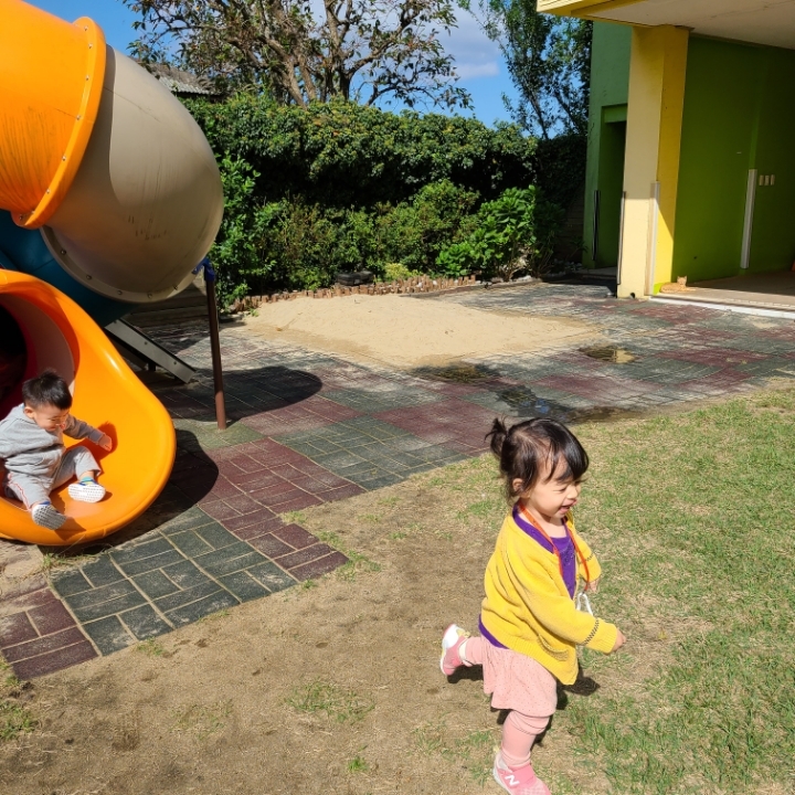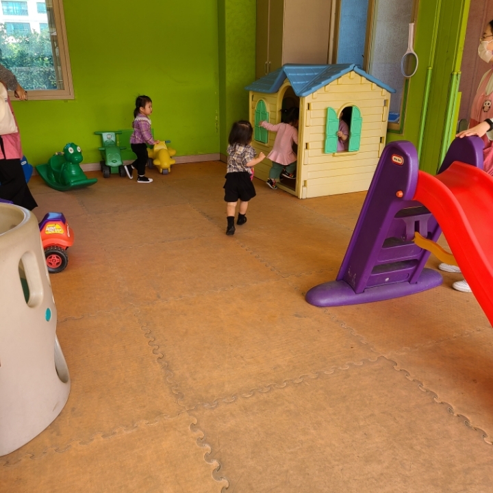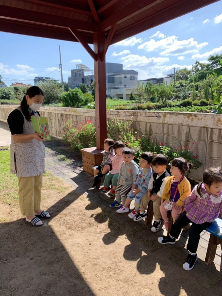 터널 미끄럼틀이 무섭지도 않은지 신나게 슝~하고 타고, 시원한 정자에서 가을 열매 책도 함께 보았답니다~😊