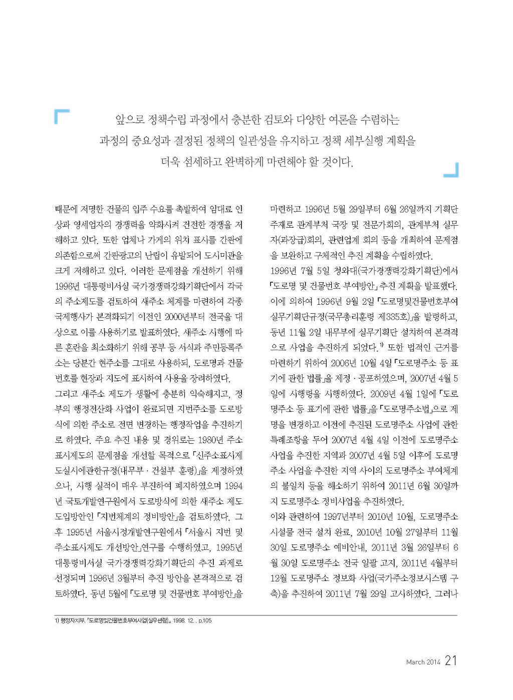 도로명주소사업의 추진과 당면과제(지방행정 제63권725호) 작성자황보상원|작성시간14.05.12|조회수64 목록 댓글 0 글자크기 작게가 글자크기 크게가 다음검색 현재 게시글 추가 기능 열기 북마크 공유하기 신고 센터로 신고 댓글 댓글 0 댓글쓰기 답글쓰기 댓글 리스트