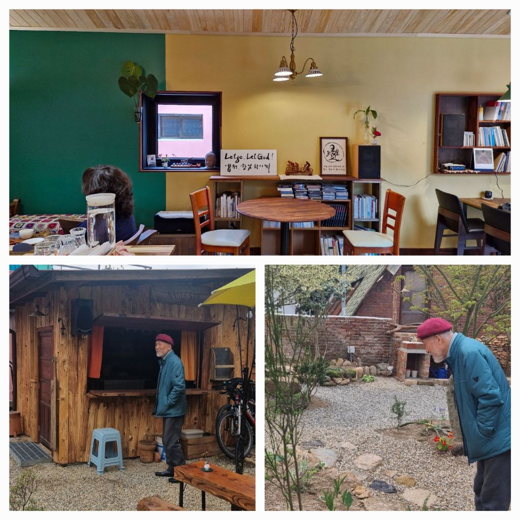 선생님과 길을 나섭니다. 꽃길을 달려 도반이 기다리는 꽃이 가득한 카페에서 환대를 받습니다. "나의 입맛에 맞게 하고, 사람들의 입맛에 맞추지 말자." 주인장에게 영업비밀이라고 한 말씀하십니다.