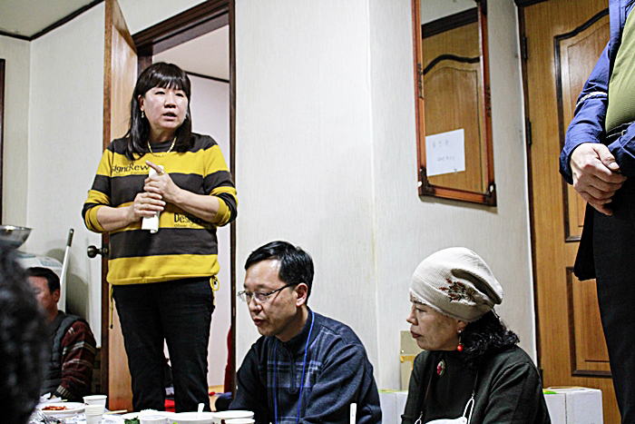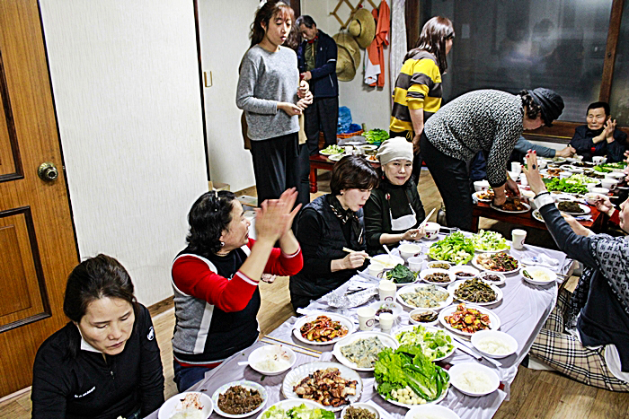 첫날 저녁을 한양수 회장댁에서 푸짐한 음식에 포식한 다음 고정현 자문위원장의 사회로 간담회로 문학 토론을 하며 밤이 깊은 줄을 모른 채 밤 한 시 반까지 모두가 즐겁고 기뻤던 시간은 더 없은 가족적인 분위기의 친교 시간이기도 했다. 잠자리는 여자분들은 두 방에서 남자들은 마루에서 합숙하면서 다소 불편은 했어도 추억에 남을 일이다. 이 자리가 회장님 댁 별장으로 부담 없이 떠들고 늦은 밤까지 불을 밝힐 수 있다는 것이 감사하지 않은가? .
