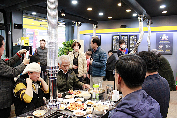 상경길에 마지막 들른 곳이 양경숙 시인이 요즘 개업했다는 양꼬치 & 양갈비 식당(T.041-681-9592)이었다. 충남 서산시 대산읍 구진로 46-1에 자리잡고 있는 아름다운 식당이었다. 축하도 해줄겸 저녁이 계획돼 있었다. 양경숙 시인이 어느틈에 숙달된 서빙 솜씨로 양 갈비를 구어주고 있었다. 너무나 맛있게 잘 먹어서 언제 또 먹어볼지 서울까지 배달 해줄 수만 있다면 하는 아쉬움만 남는다. 대박 날것이라 믿는다