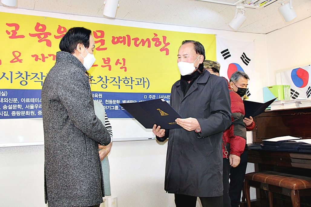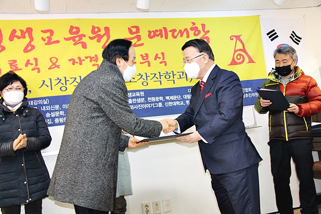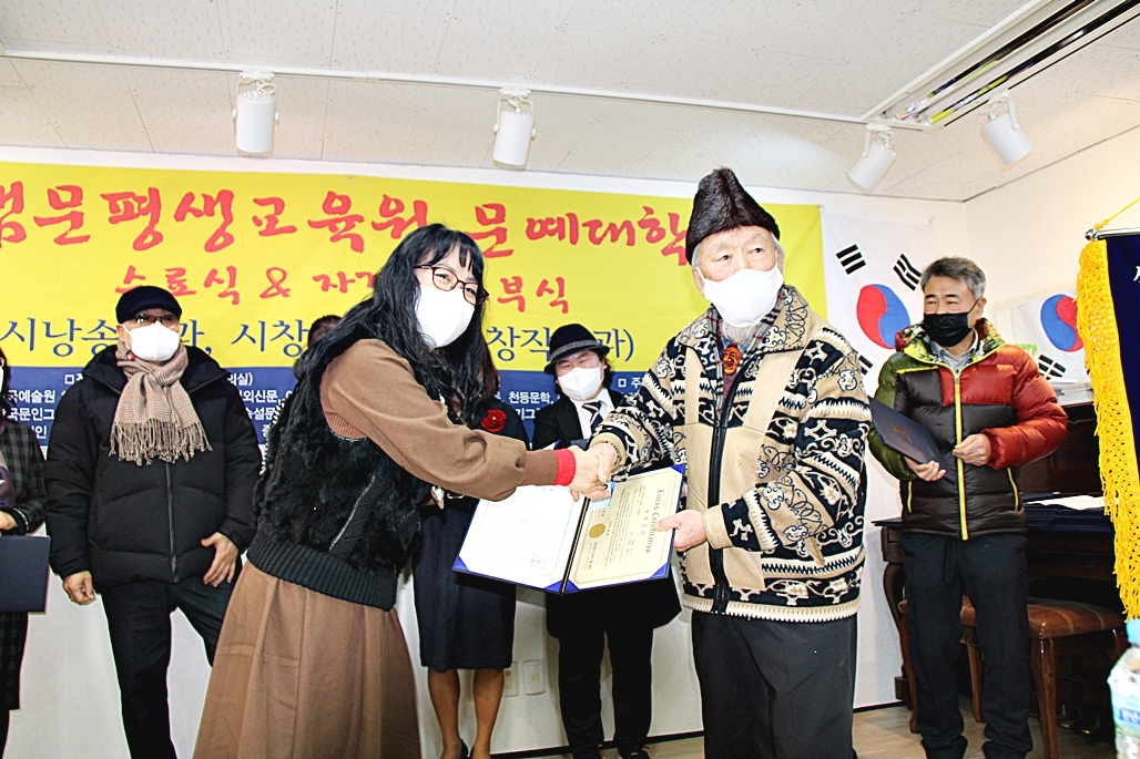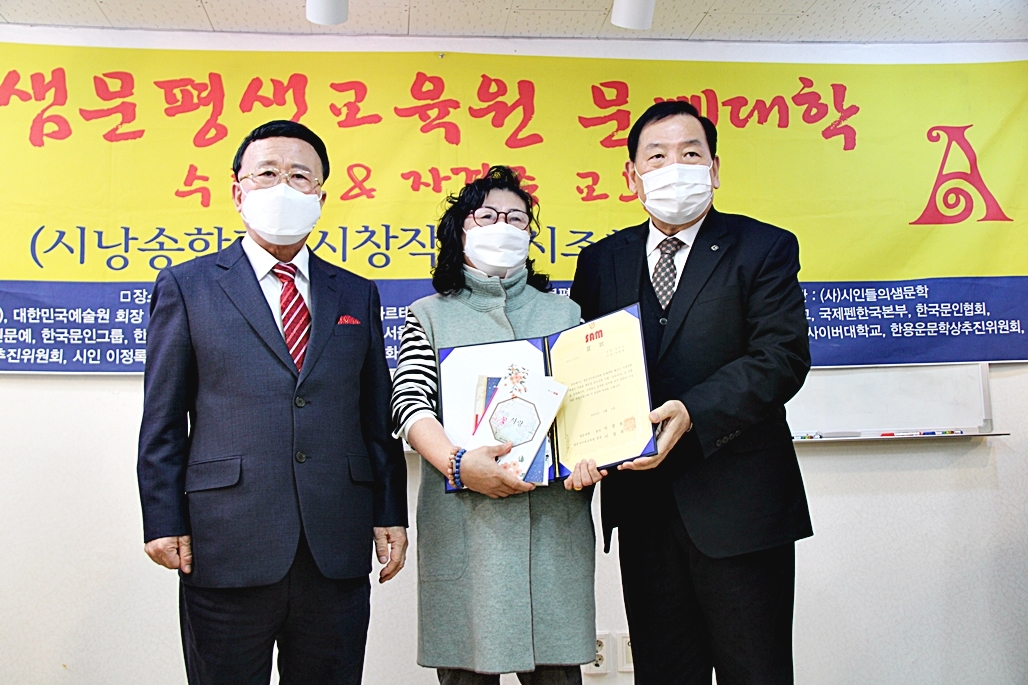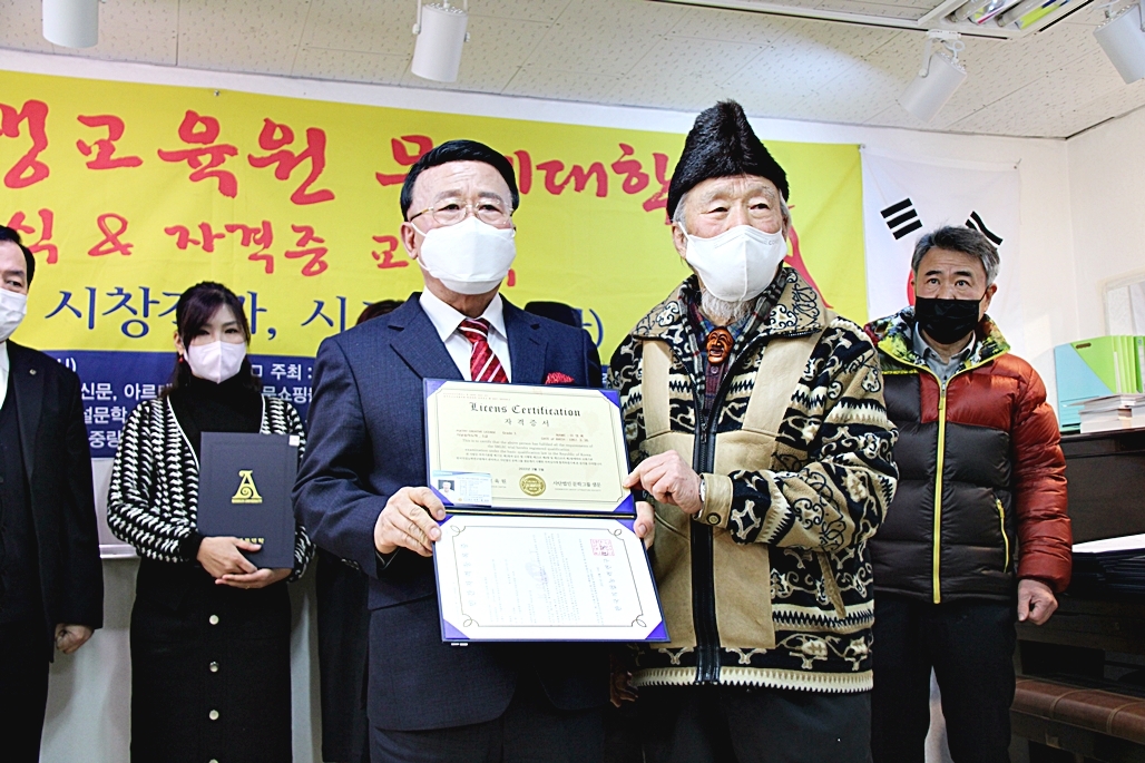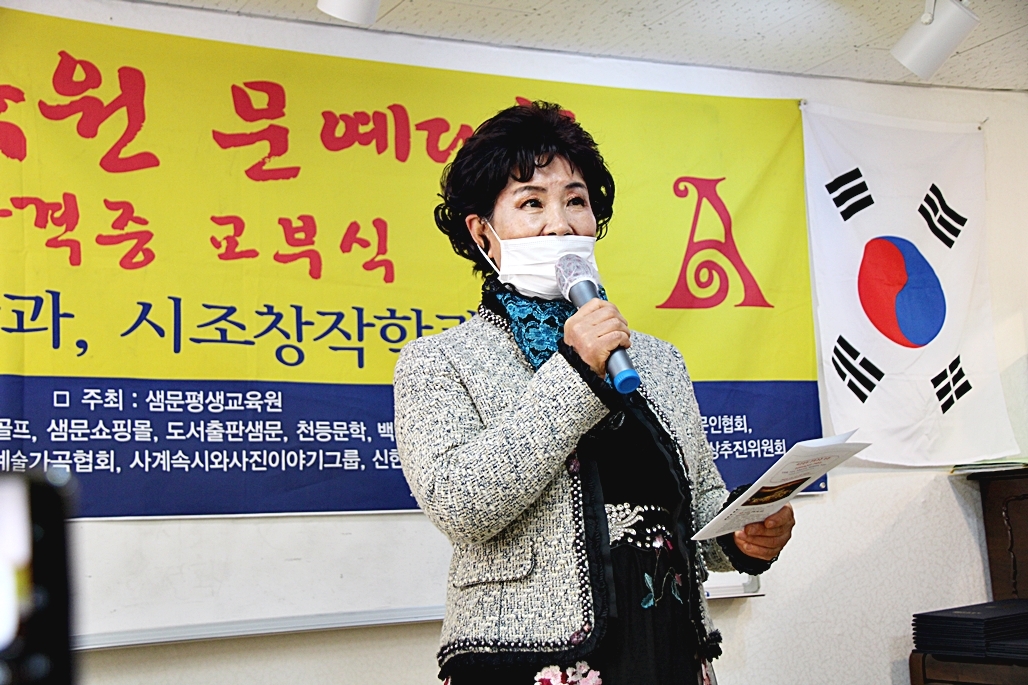 시창작가 2급, 1급, 자격증 교부식에서는 김정자 창작가가 1급 자격증을, 정희오 창작가, 박봉황 창작가가 2급 자격증을 교부받았다, 뒤이어 백일장 시상식에서는 이연수 시인이 대상을 수상하였고, 최우수상에는 정희오 시인이, 우수상에는 김정자 시인이, 장려상에는박봉황 시인, 문수점 시인이 수상하였다.