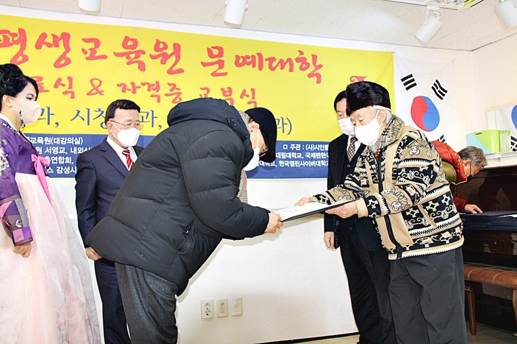 시낭송지도자 2급 자격증 교부식에서는 이복동, 권숙희, 서보언, 인정희, 서금수, 서정원, 박선녀, 김미성, 한경동, 이정록 낭송지도자가 자격증을 교부받았다. 시낭송지도자 1급 자격증 교부식에서는 한경동 낭송지도자, 이정록 낭송지도자, 표시은 낭송지도자가 자격증을 교부받았다.