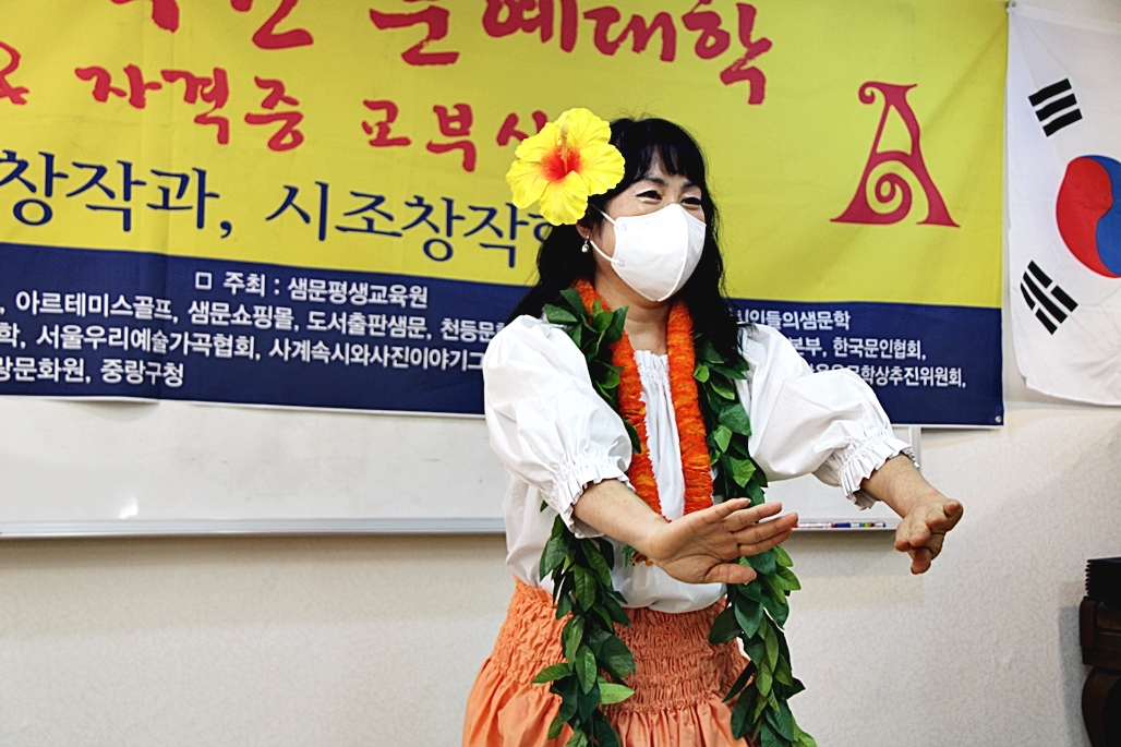 이어서 축하공연으로 서금수 프로댄서의 하와이 홀라댄스로 5분동안 이국의 시원한 하와이의 여름바다를 연상시켰다.