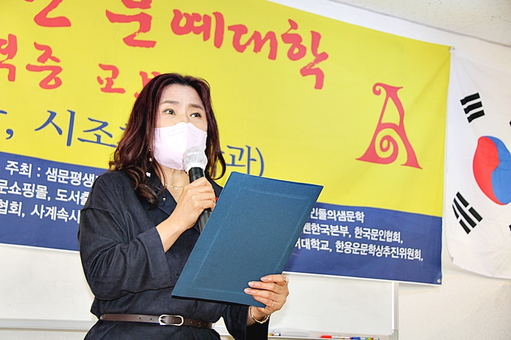 축시낭송 축하공연에는 샘문대학 조교수인 표시은 낭송가의 시낭송 2편과 권숙희 지도교수의 축시낭송 2편이 낭송되어 큰 박수를 받았다. 이들은 2021년 11월 29일에 개최된 한용운전국시낭송대회에서 권숙희 시낭송가가 대상을, 표시은 낭송가가 장려상을 수상한 프로낭송가들이다