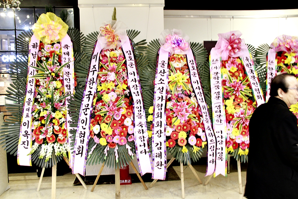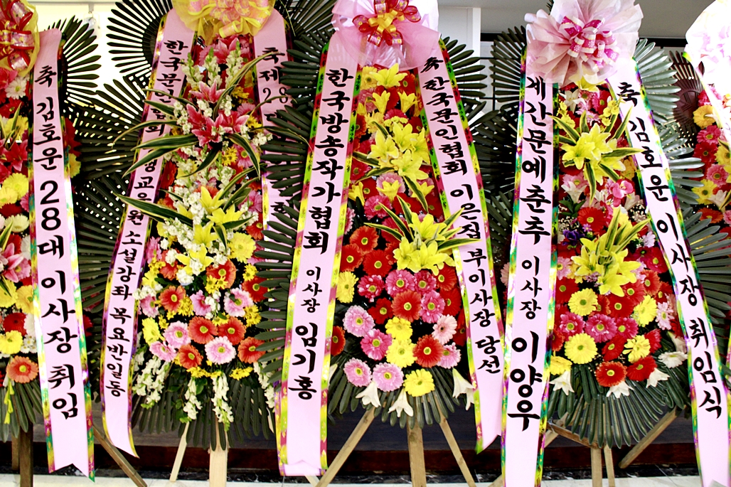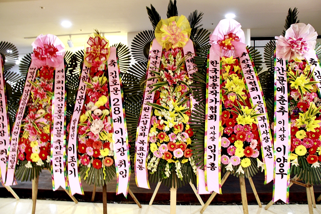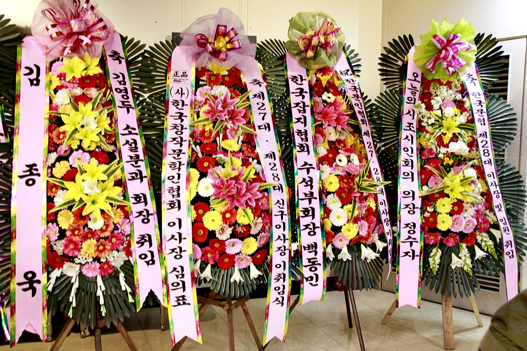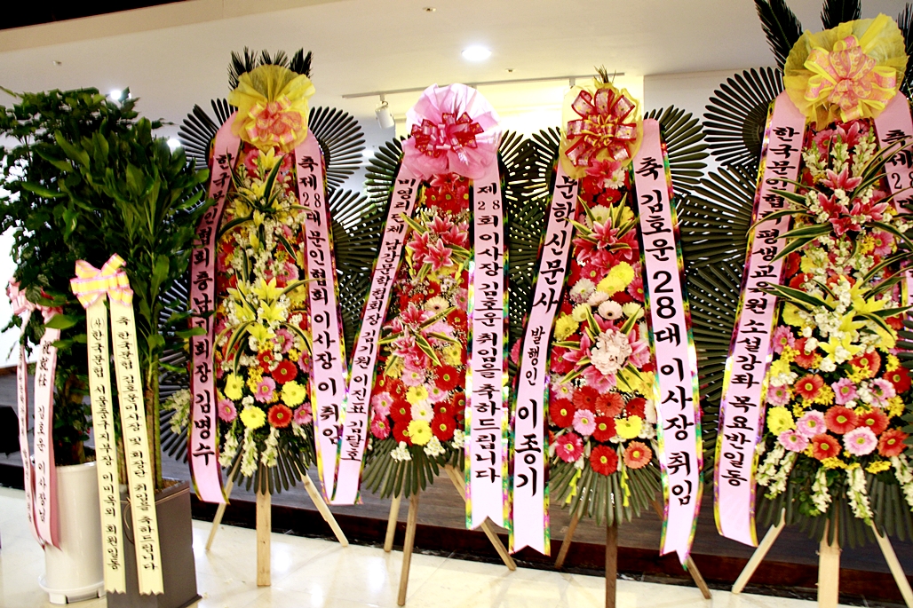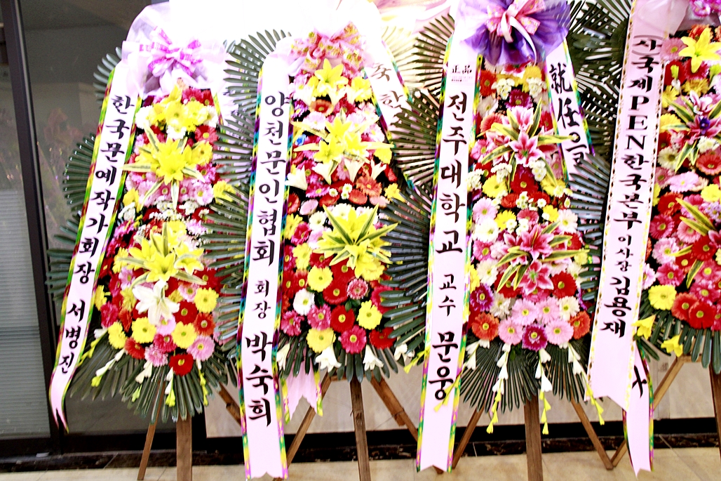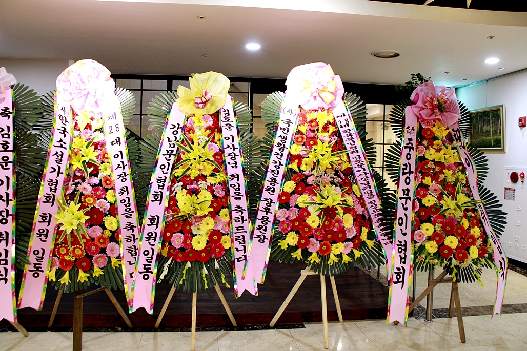 입구에 도열한 축하 화환들