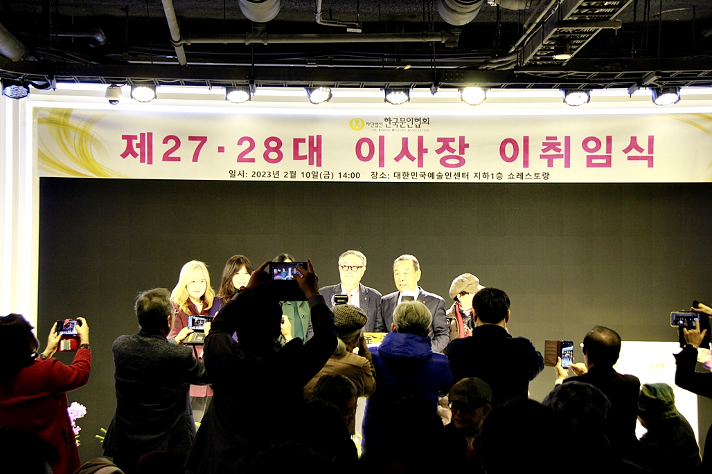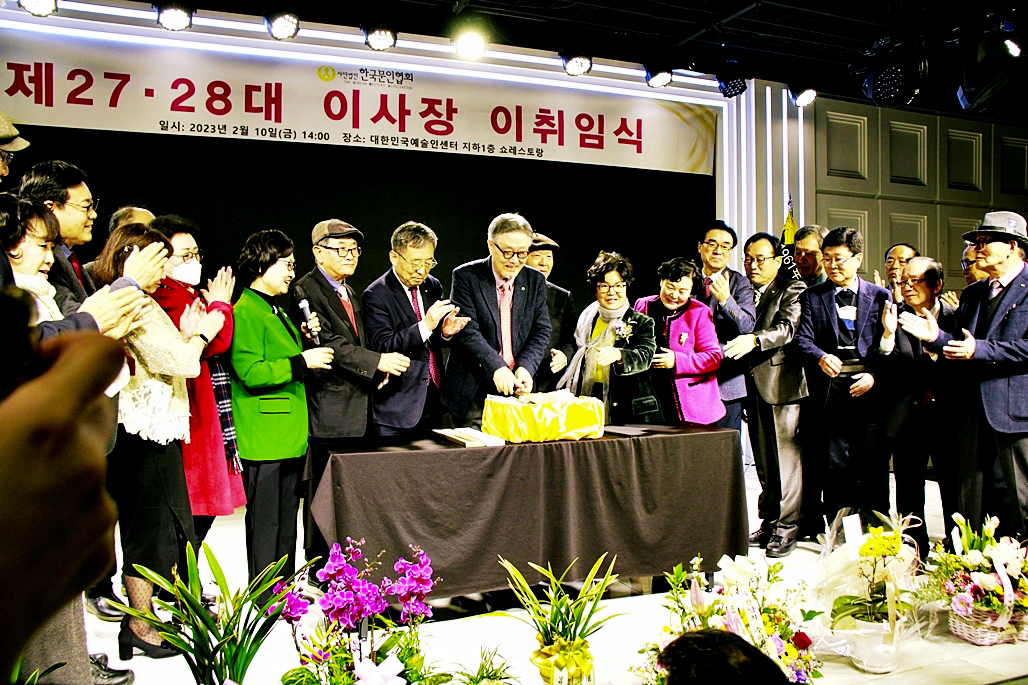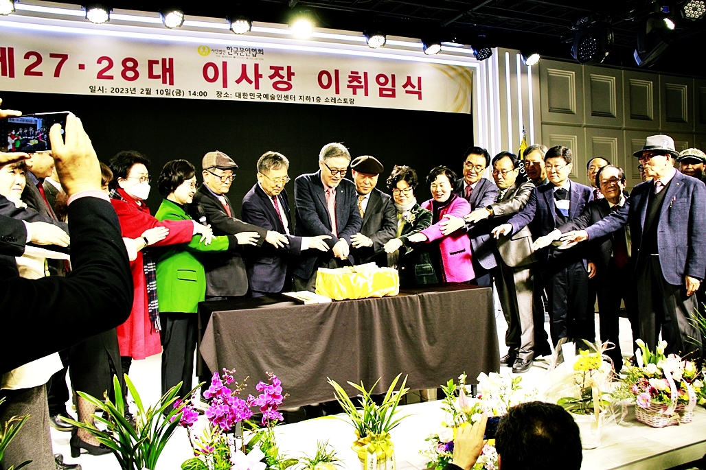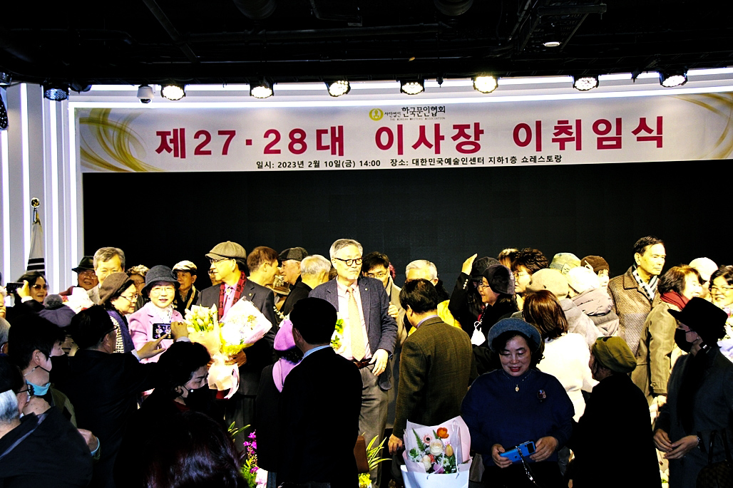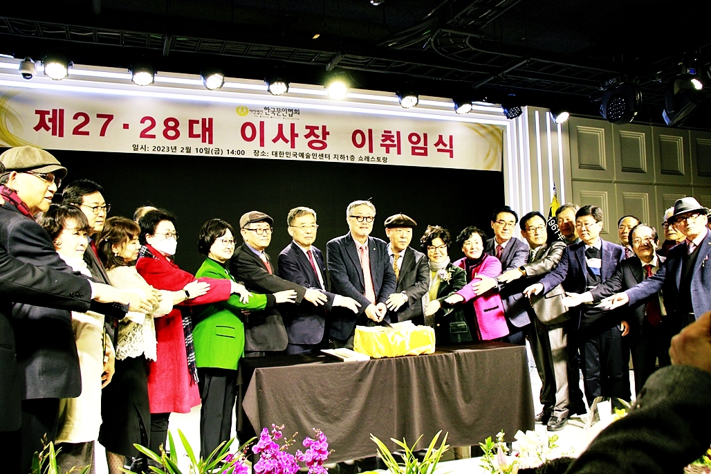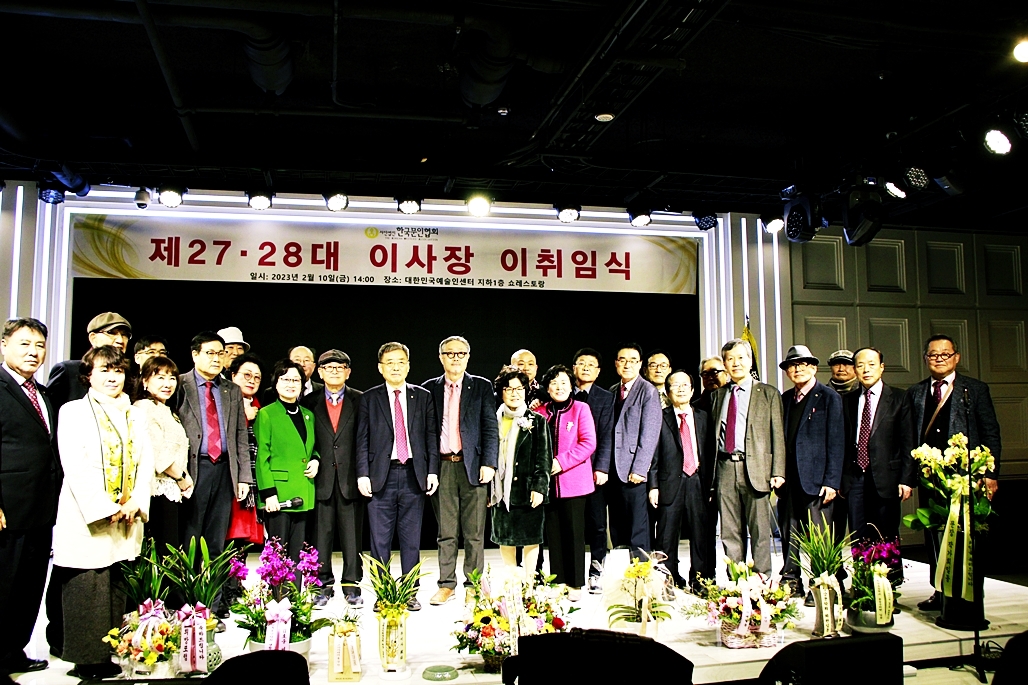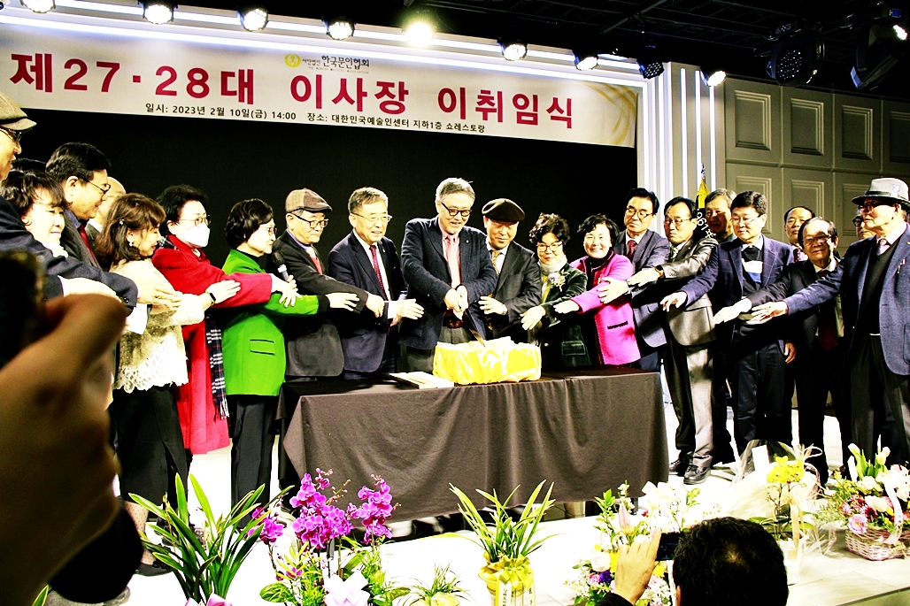 한국문협 제27대·28대 이사장 이·취임식이 2023년 2월 10일(금) 오후 2시부터 목동 대한민국예술인센터 B1 공연장에서 실시되었다. 아울로 부이사장에 강정화(시)·구재기(시)·노창수(시)·김민정(시조)·이은집(소설)·장호병(수필)·윤영훈(아동문학). 분과회장에 박영하(시)·권남희(수필)·홍성훈(아동문학)·강경호(평론)·임성구(시조)·김운중(민조시)·김영두(소설)·김대현(희곡)·김정학(청소년) 임원들이 취임하였다. (평론분과 강경호 평론가, 시조분과 임성구 시조시인, 민조시분과 김운중 민조시인, 소설분과 김영두 소설가, 희곡분과 김대현 희곡작가, 청소년문학분과 김정학 청소년문학가가 각 분과 회장에 무투표 당선되어 취임하였다.)